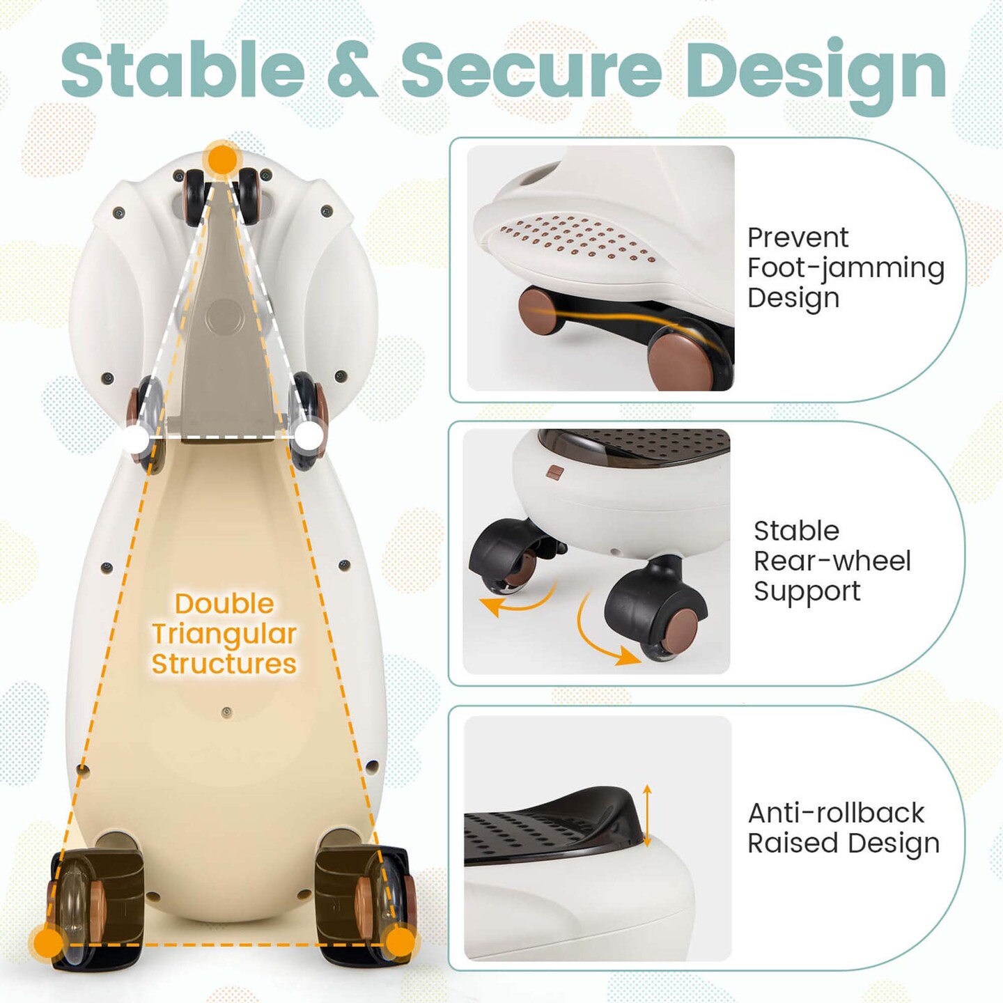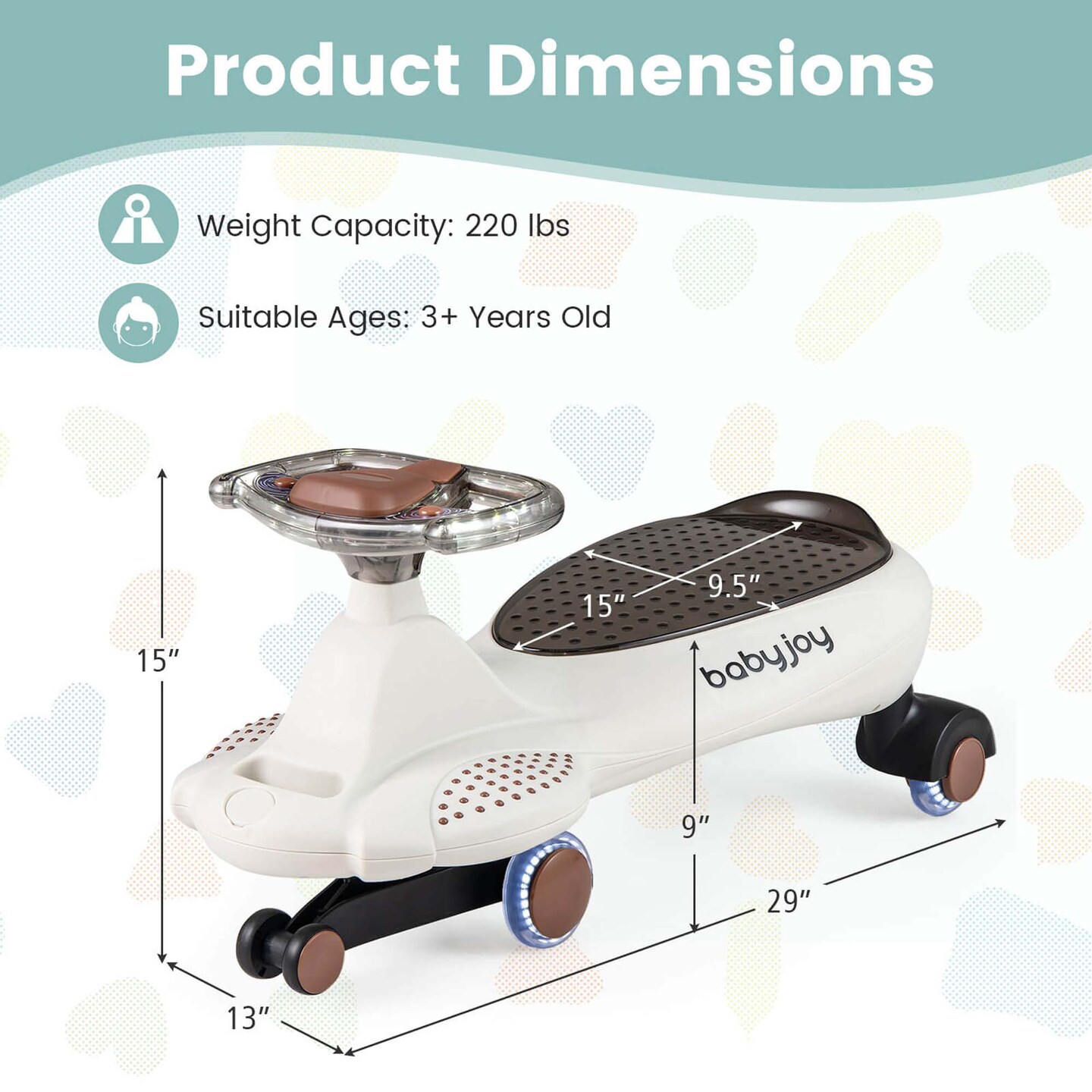 Babyjoy Wiggle Car with Hauling Rope Ride on Toy with Under-Seat Storage & Swing Car Beige/Green