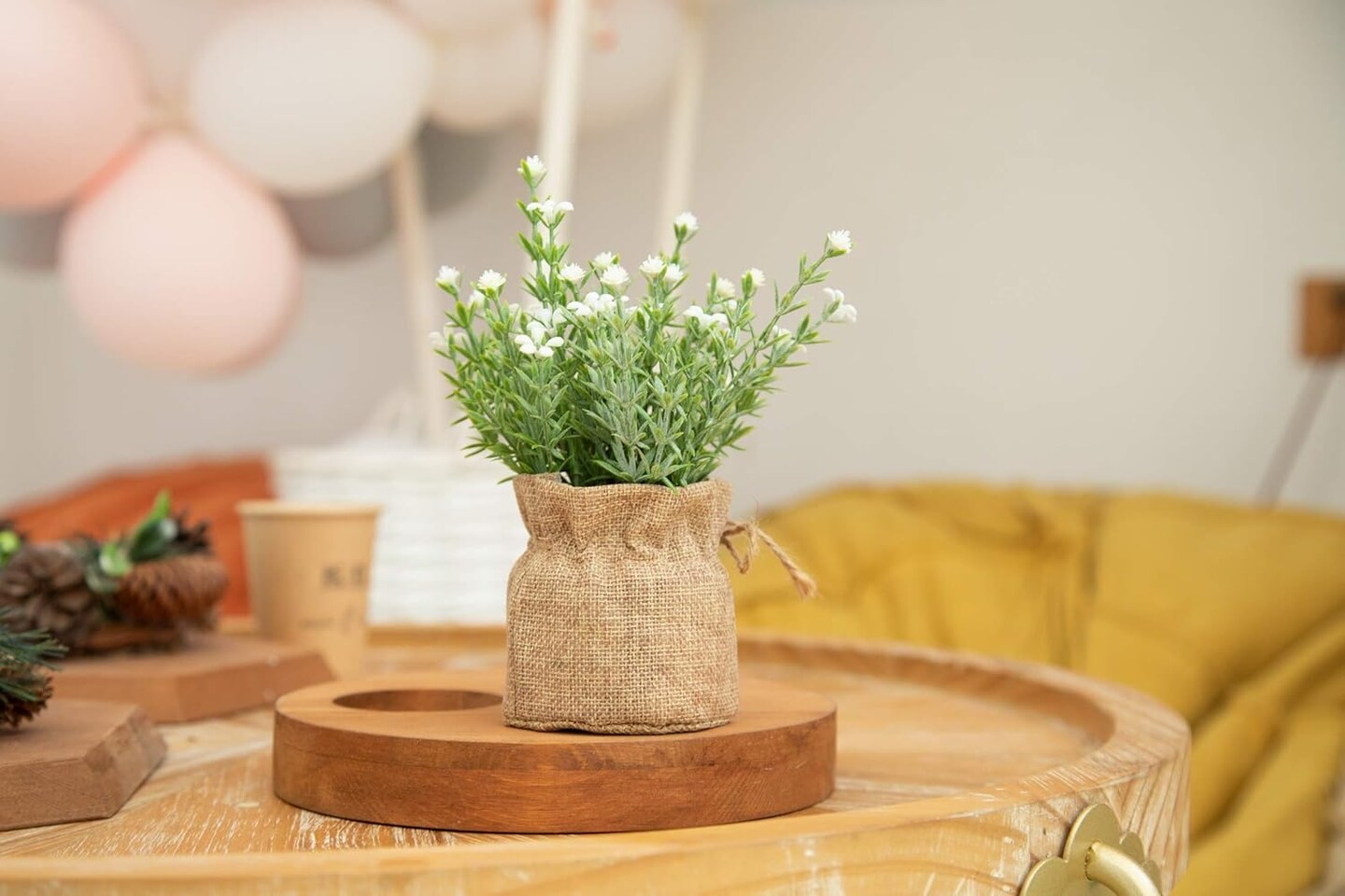 Babys Breath Artificial Flowers in Small Burlap Bag Vases 3Pcs -Gypsophila Faux Flowers Farmhouse