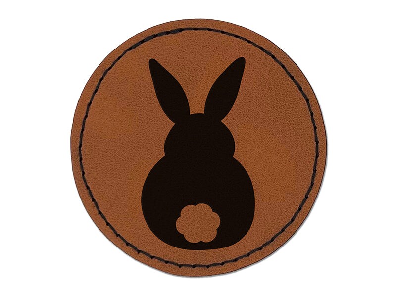 Back of Bunny Rabbit Butt Easter Round Iron-On Engraved Faux Leather Patch Applique - 2.5"