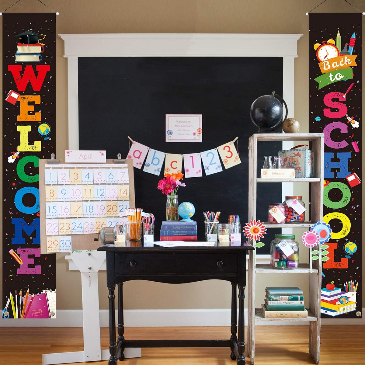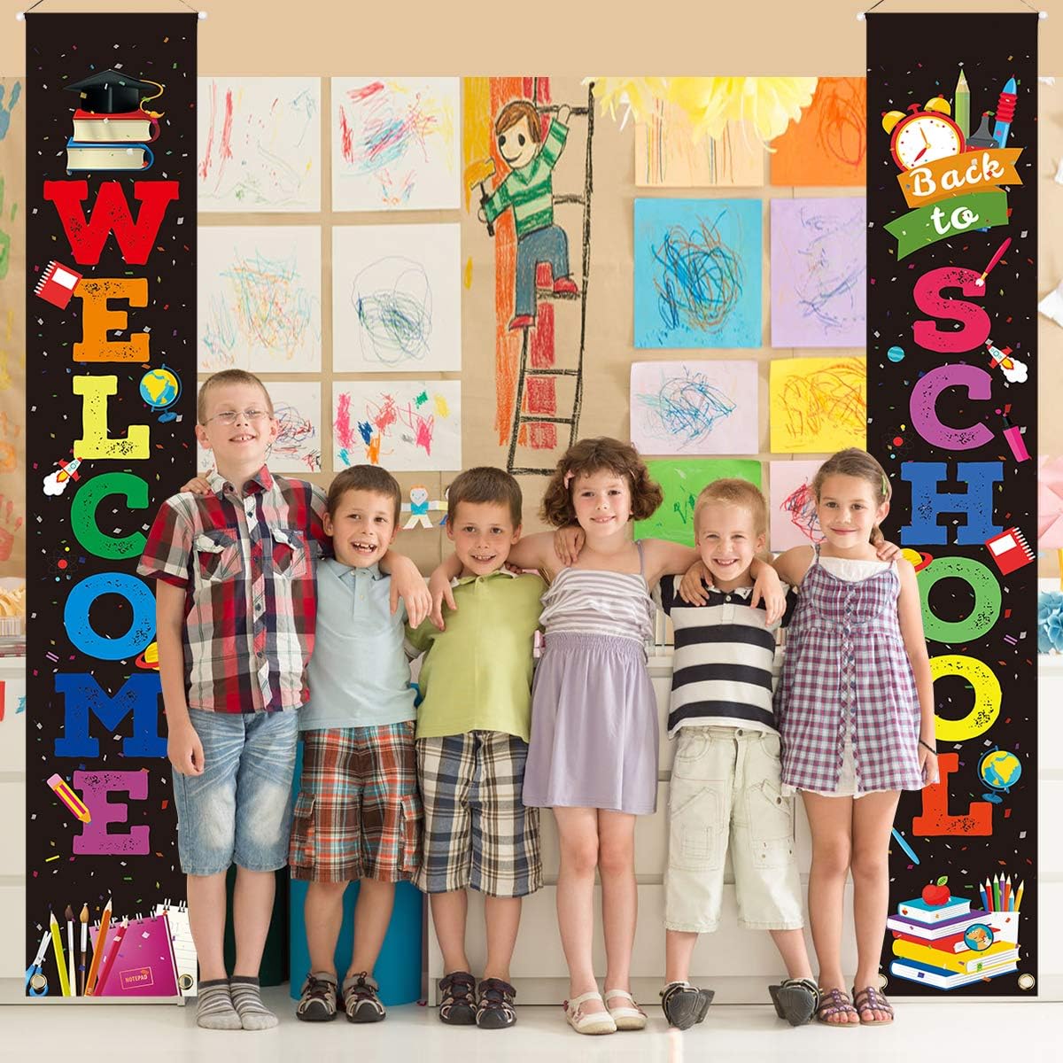 Back to School Banner Welcome Banner for First Day of School (Black) 70.87"L x 11.81"W