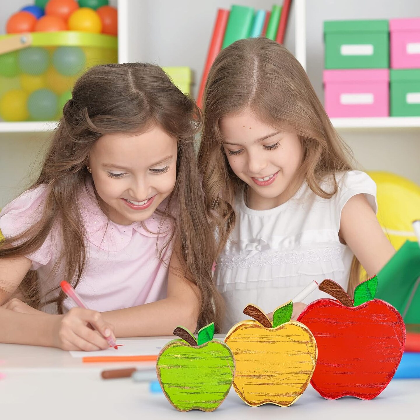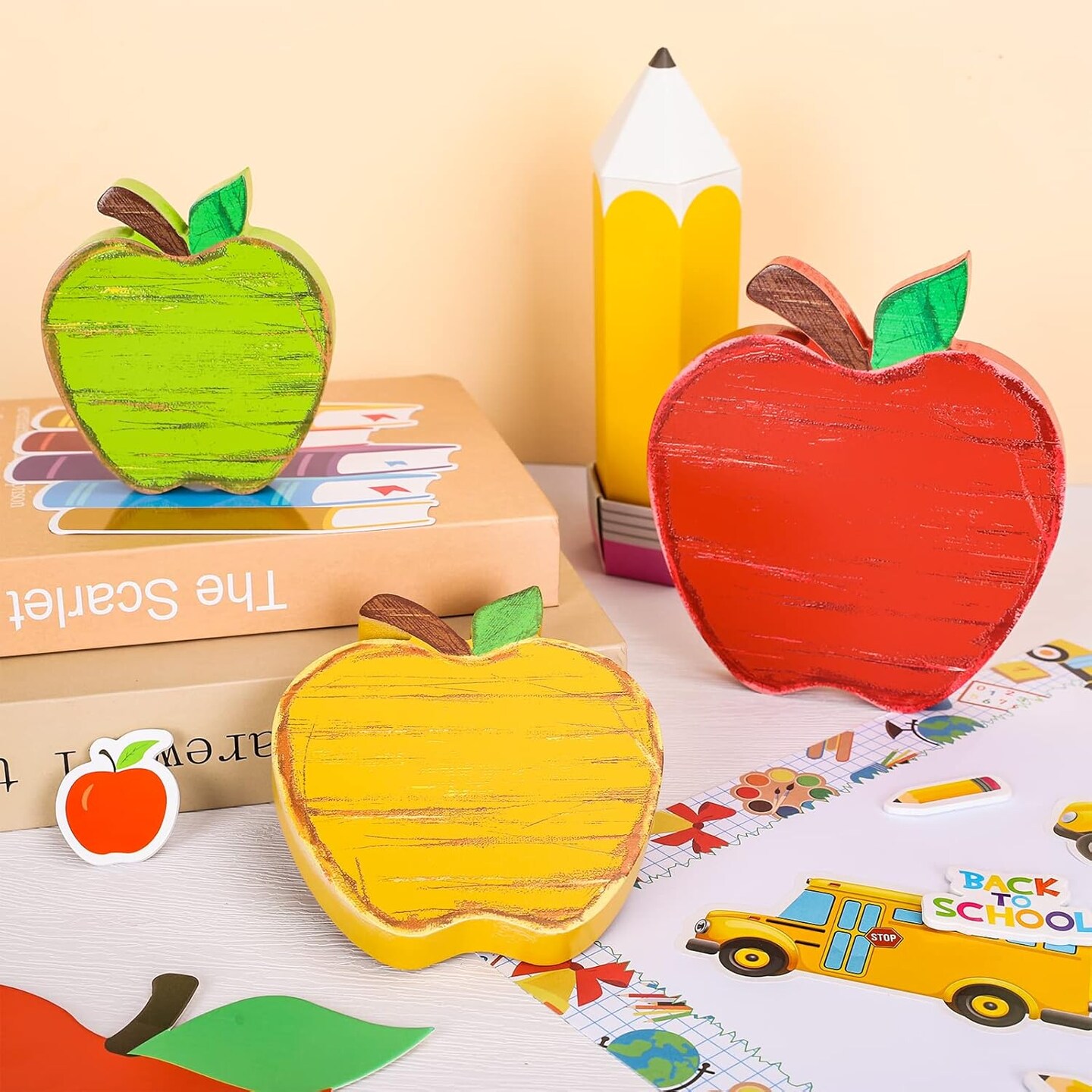Back to School Wooden Table Decor (Red, Yellow, Green)