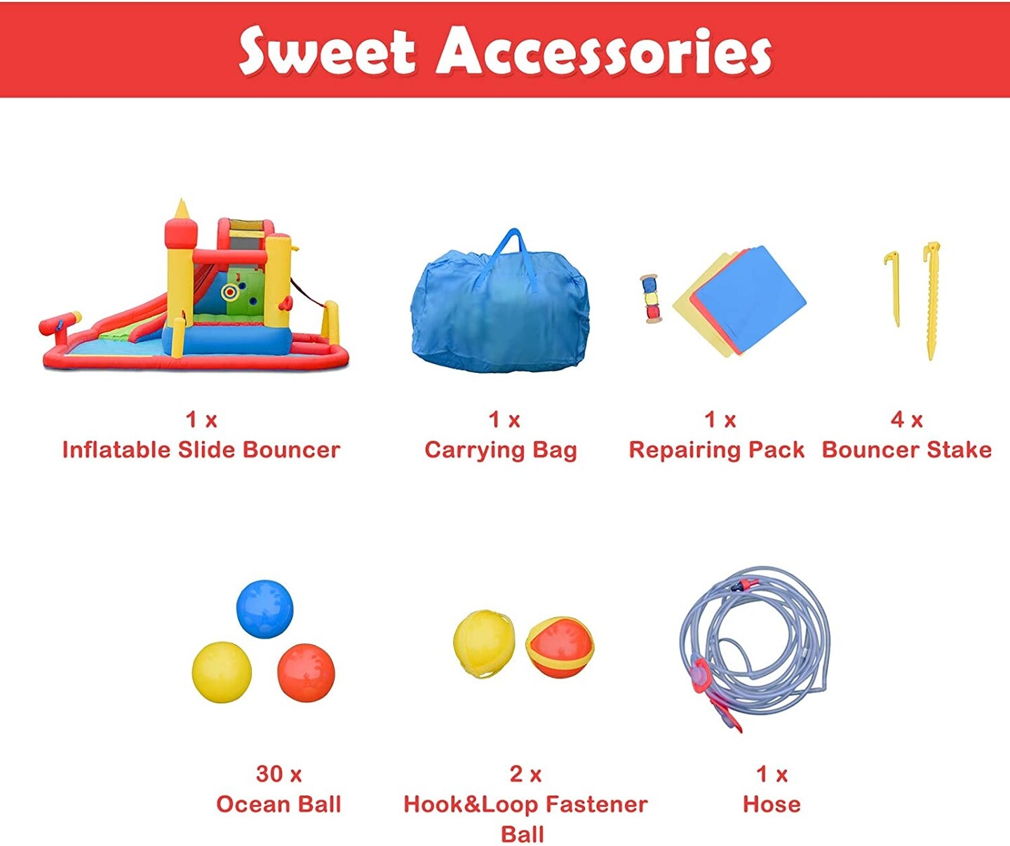 Backyard Inflatable Water Slide Castle Splash Pool 3-10 Kids Multi-Color