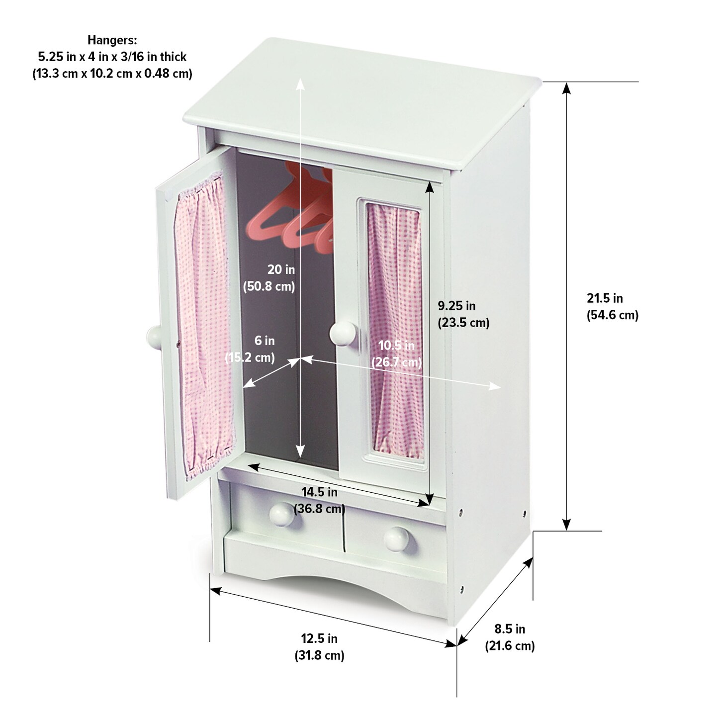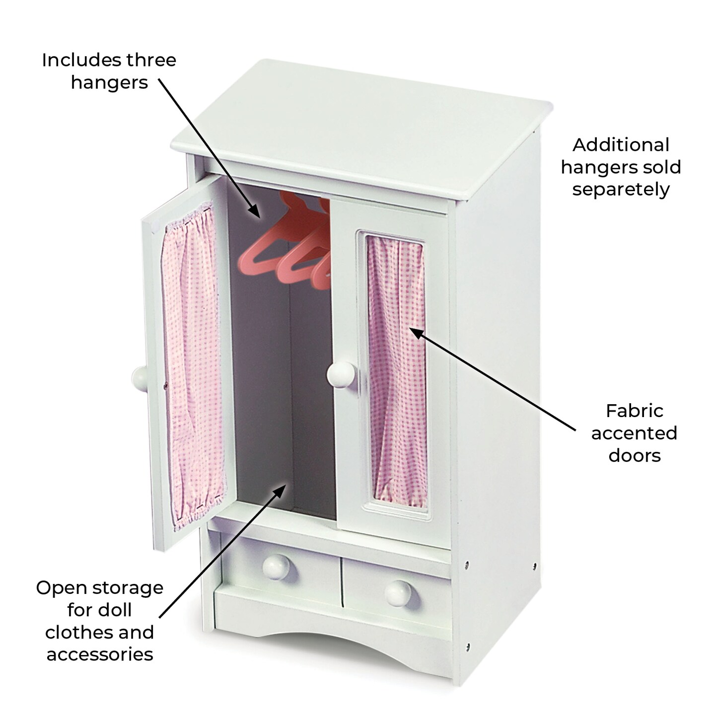 Badger Basket Doll Armoire with Three Hangers - White/Pink