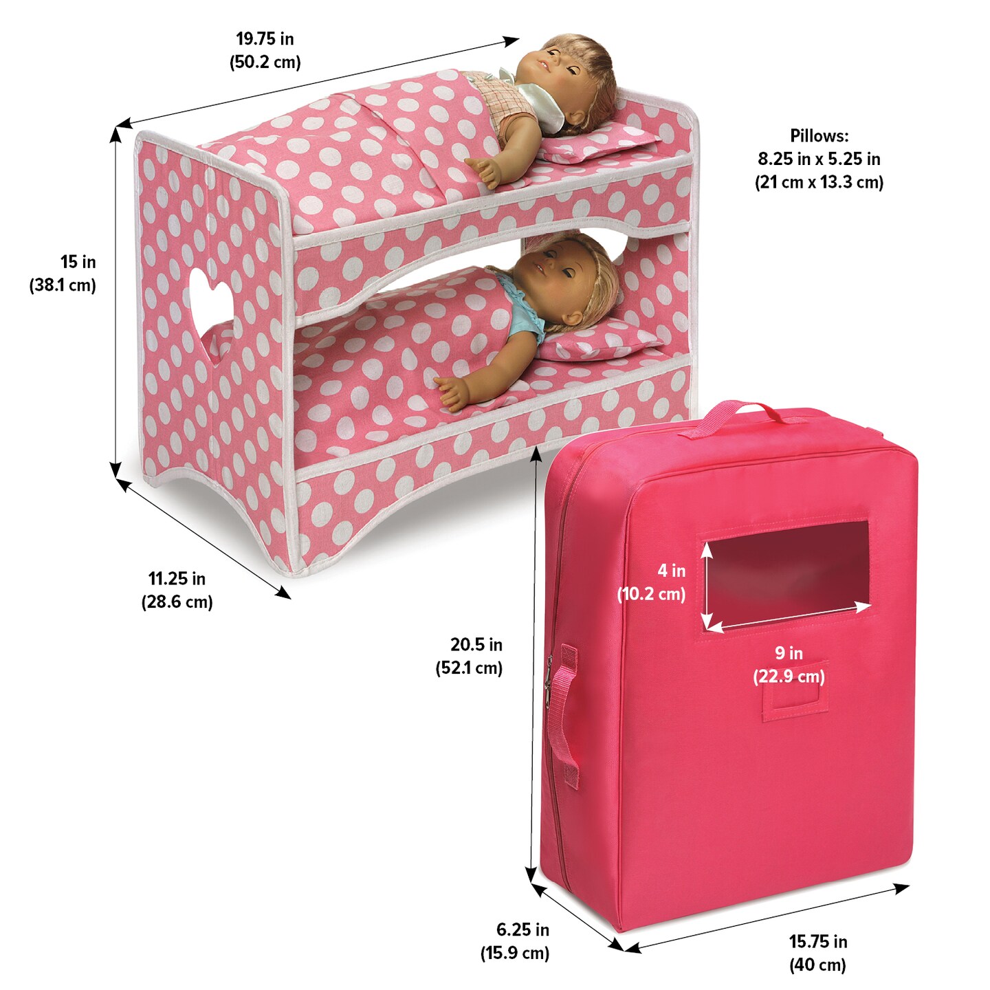Badger Basket Double Doll Travel Case with Bunk Bed and Bedding - Pink