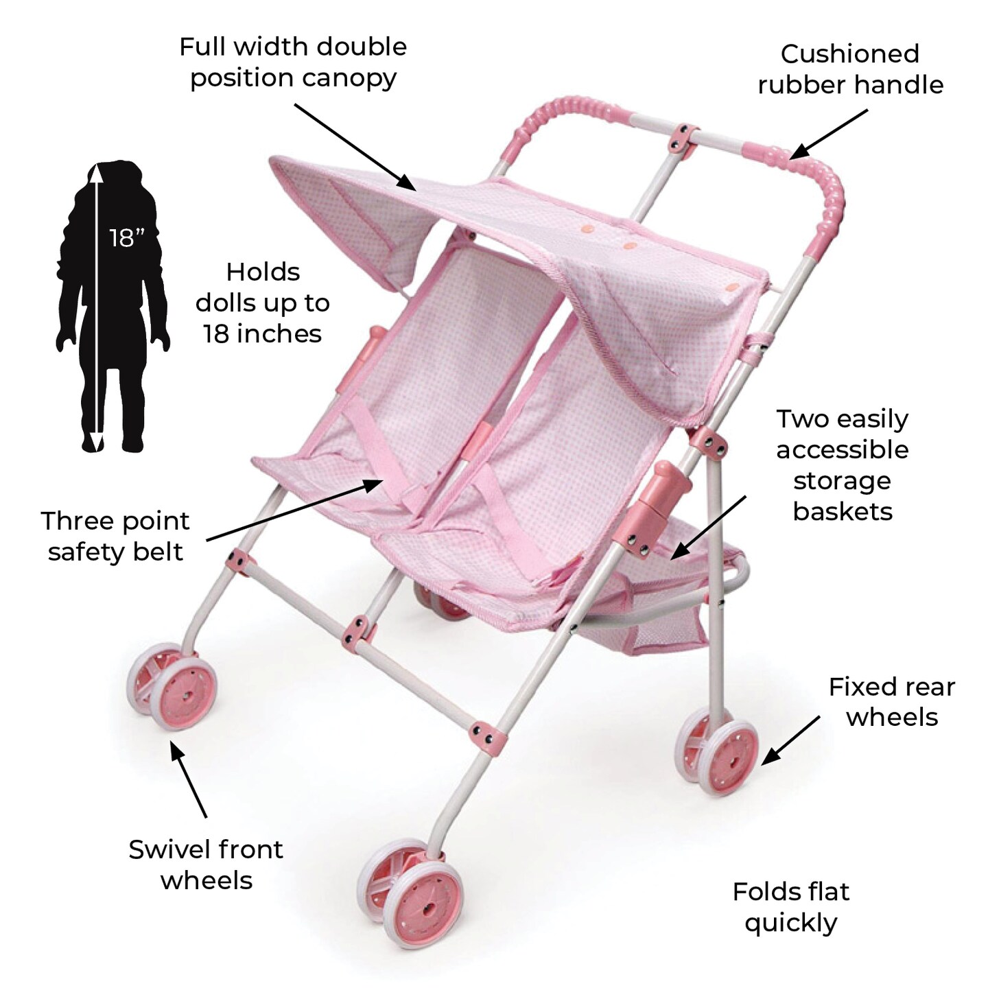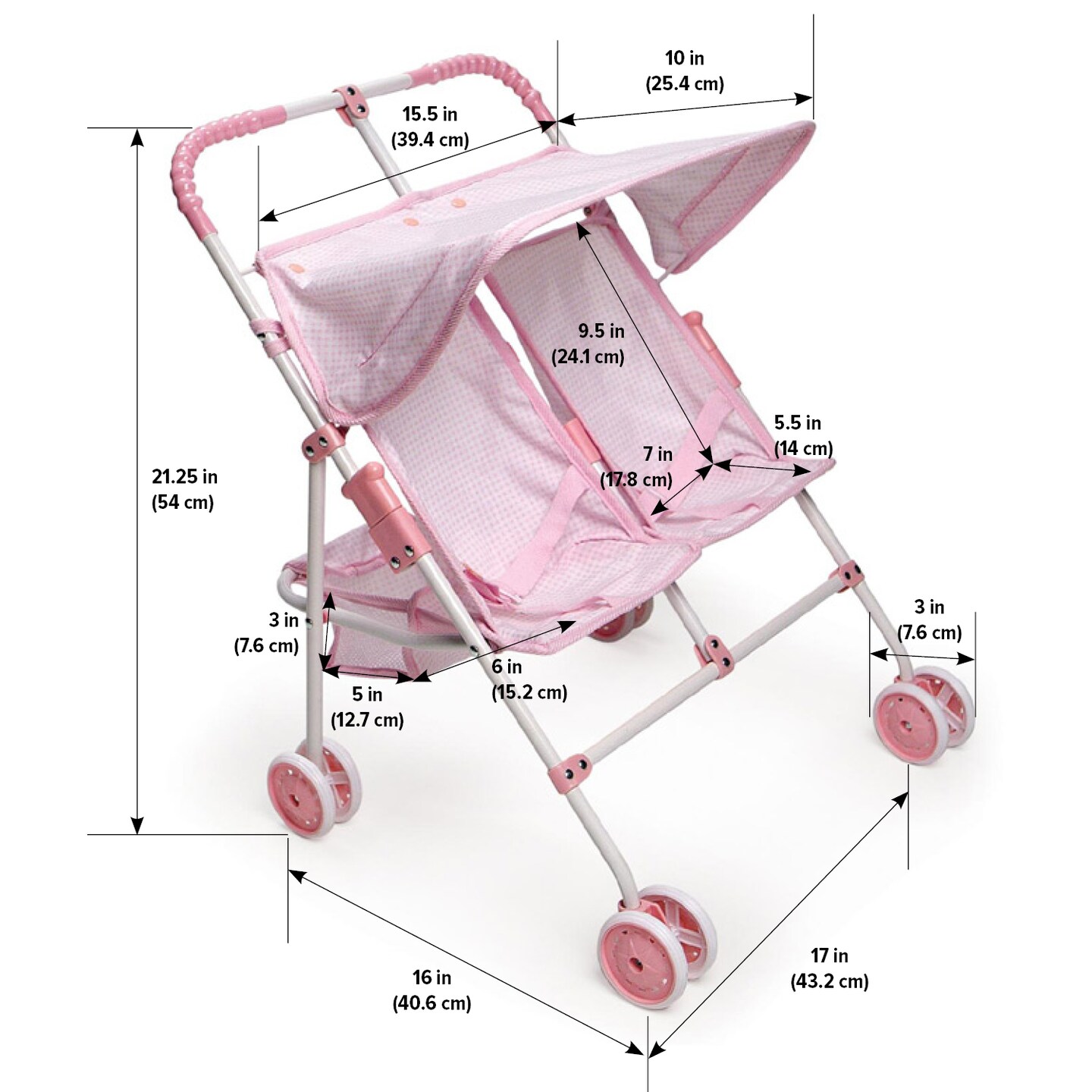 Badger Basket Folding Double Doll Umbrella Stroller - Pink/Gingham