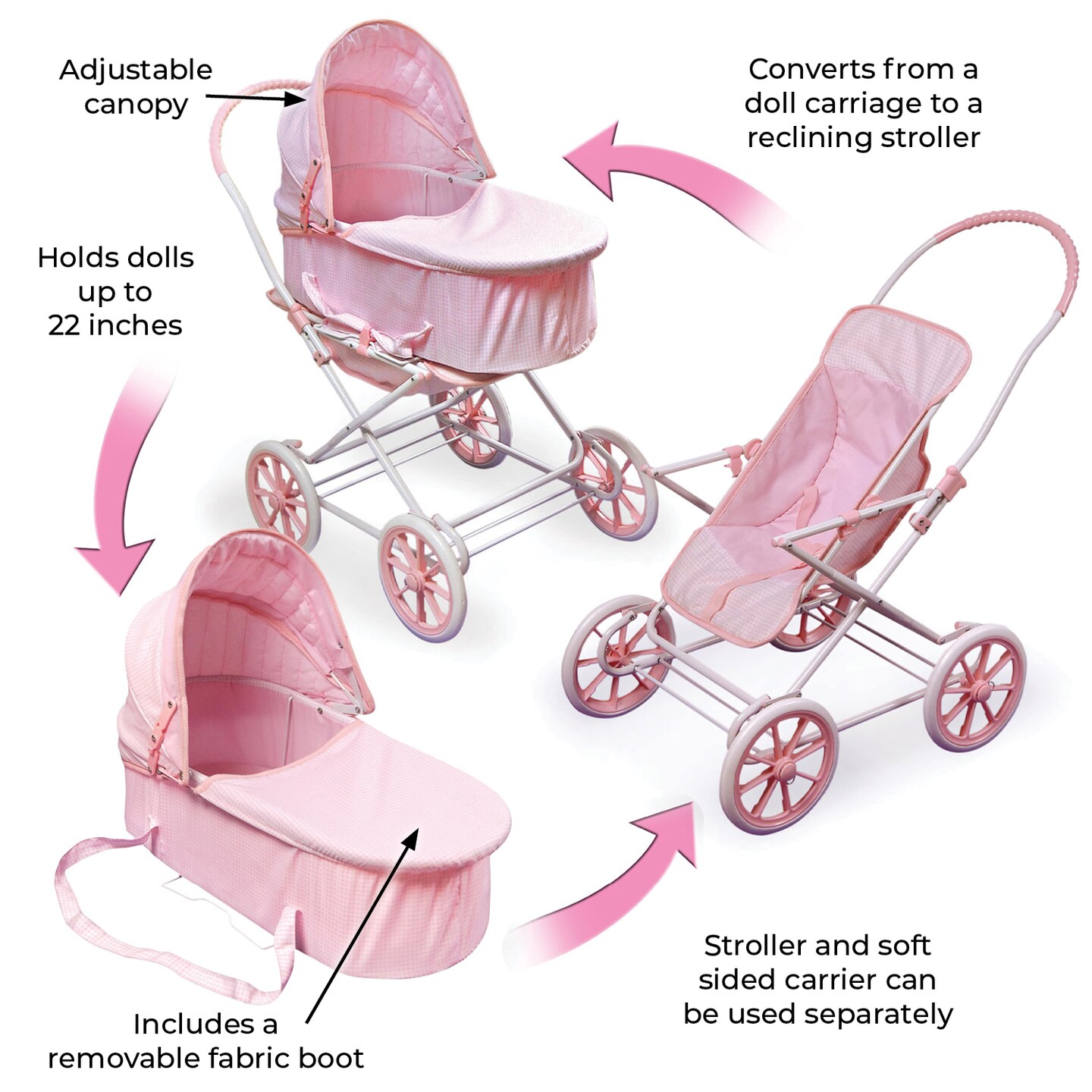 Badger Basket Just Like Mommy 3-in-1 Doll Pram/Carrier/Stroller