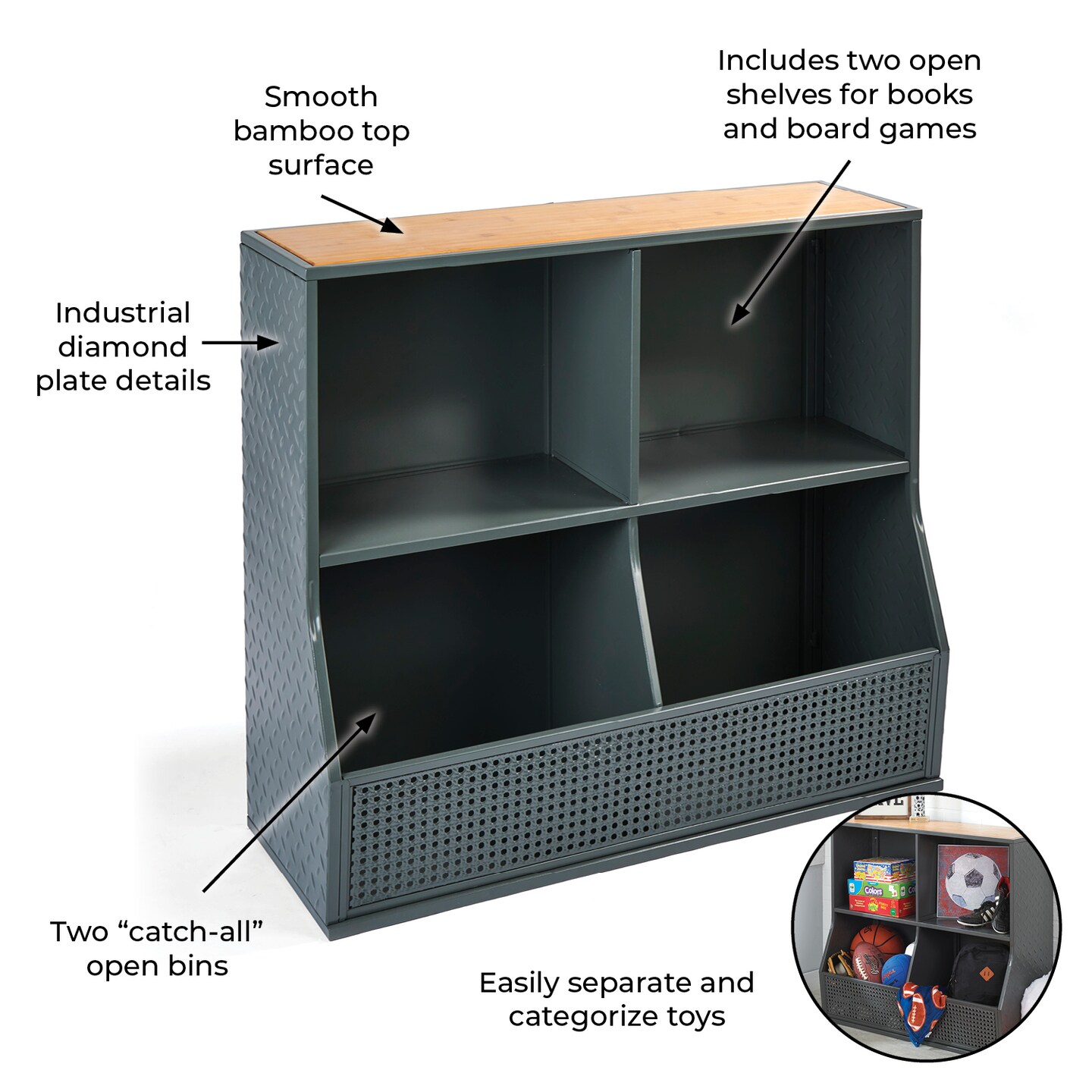Badger Basket Metal and Bamboo Multi-Bin Storage Cubby - Charcoal/Natural