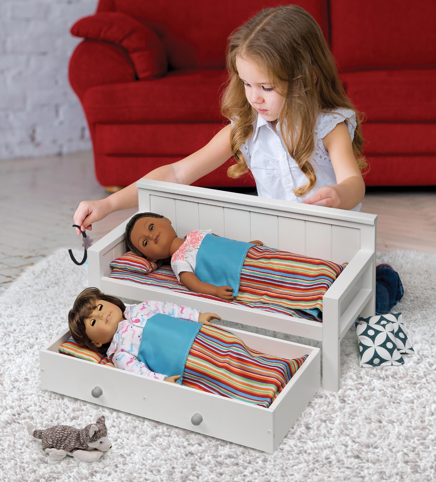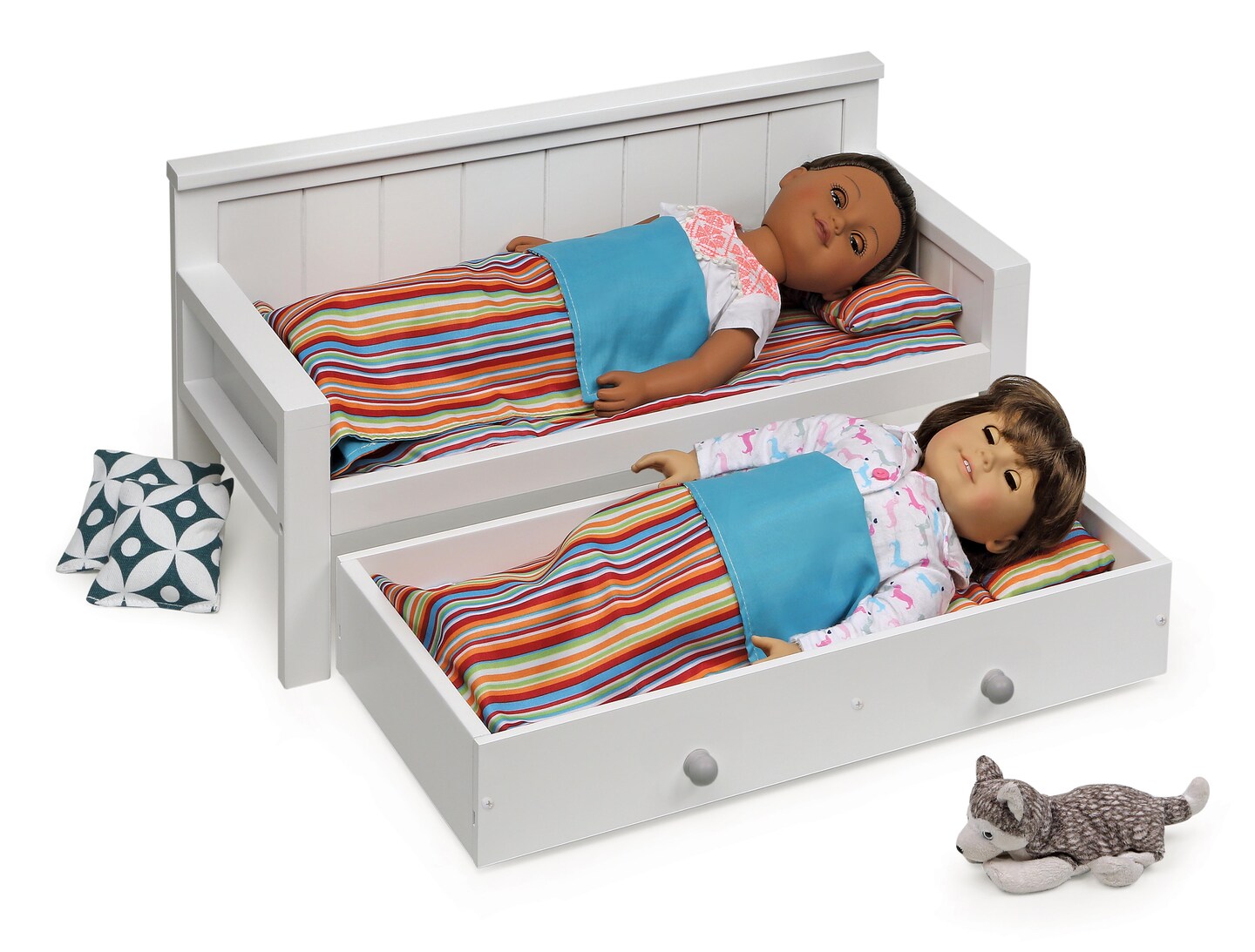 Badger Basket Sofa/Daybed with Trundle for 18 inch Dolls - White/Multi