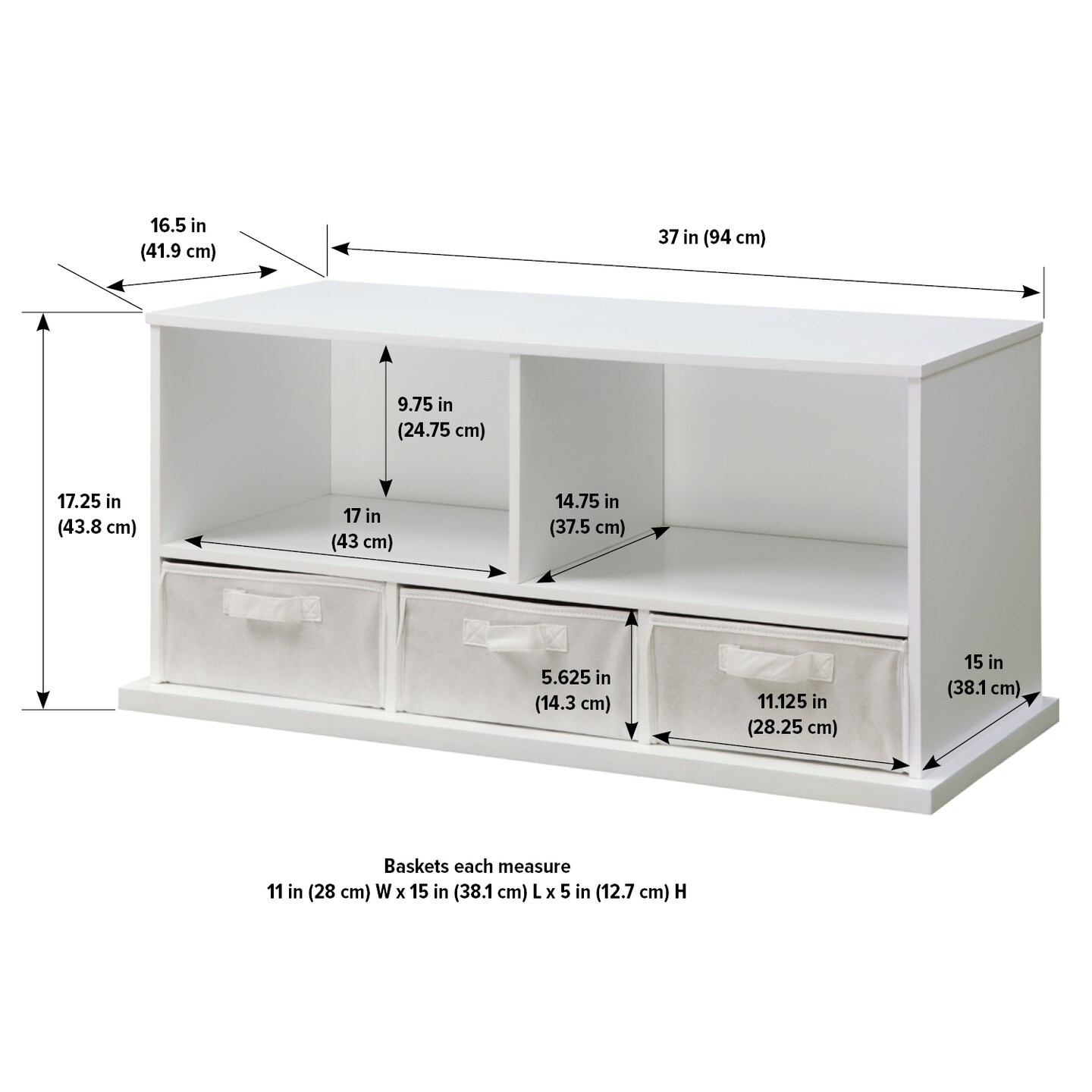 Badger Basket Stackable Shelf Storage Cubby with Three Baskets