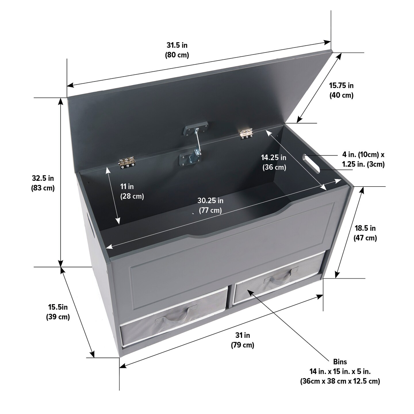 Badger Basket Up and Down Toy and Storage Box and Bench with Two Baskets - Charcoal