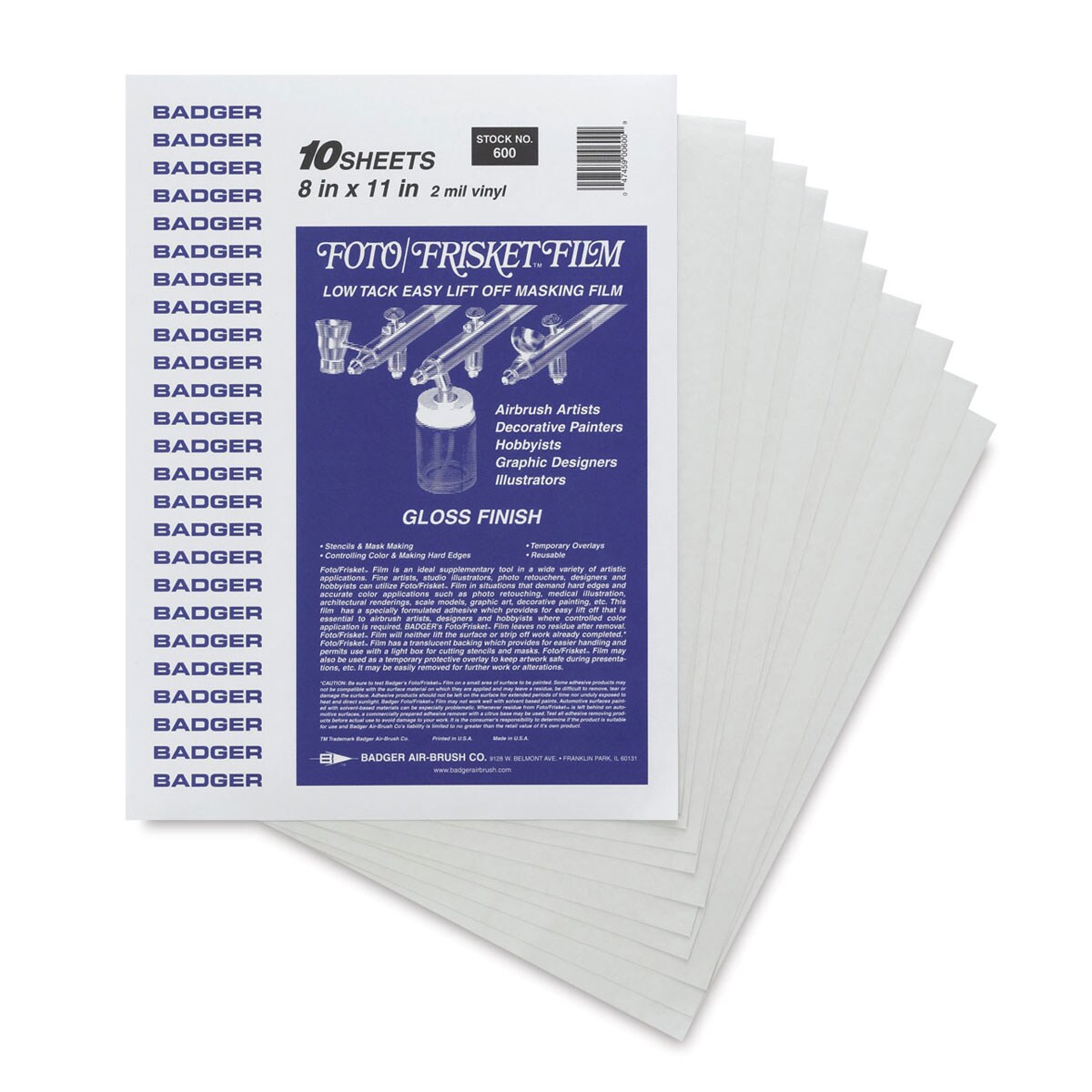 Badger Gloss Foto Frisket Film - 10 Sheets, 8" x 11"
