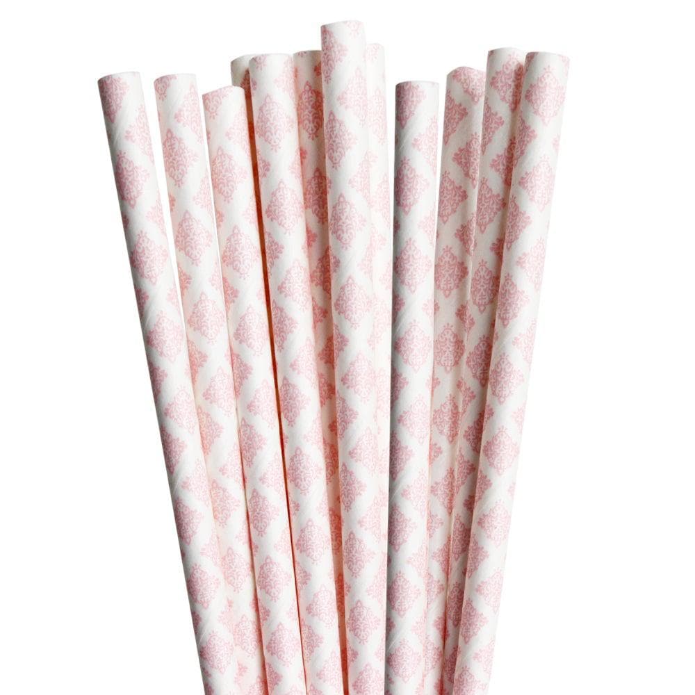Bakell - Baby Pink Damask Cake Pop Party Straws - 24pc