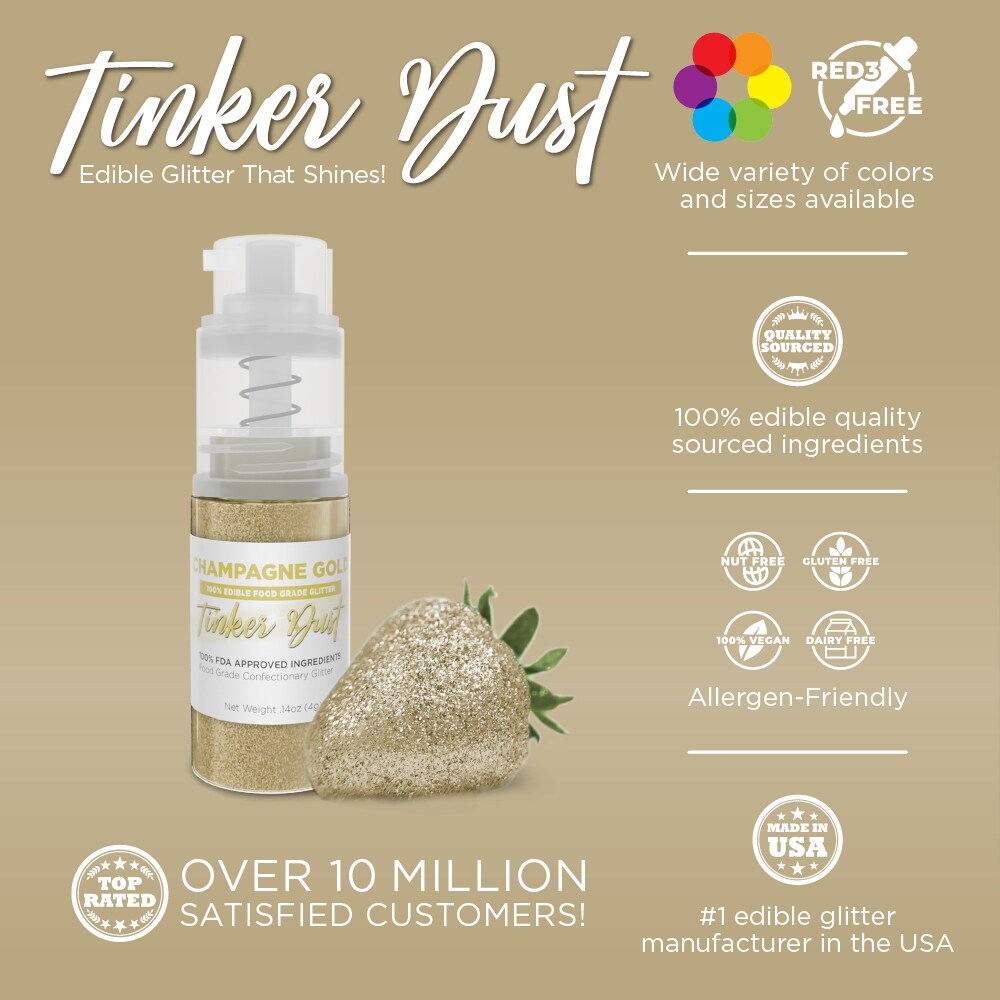 Bakell - Champagne Gold Tinker Dust Edible Glitter (4g, 1x Spray Pump) for Food, Desserts, and Beverages!