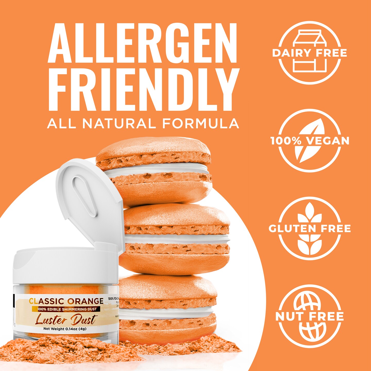 Bakell - Classic Orange Luster Dust (4g, 1x Jar) Edible Vegan Dust & Paint for Baking, Desserts and Beverages