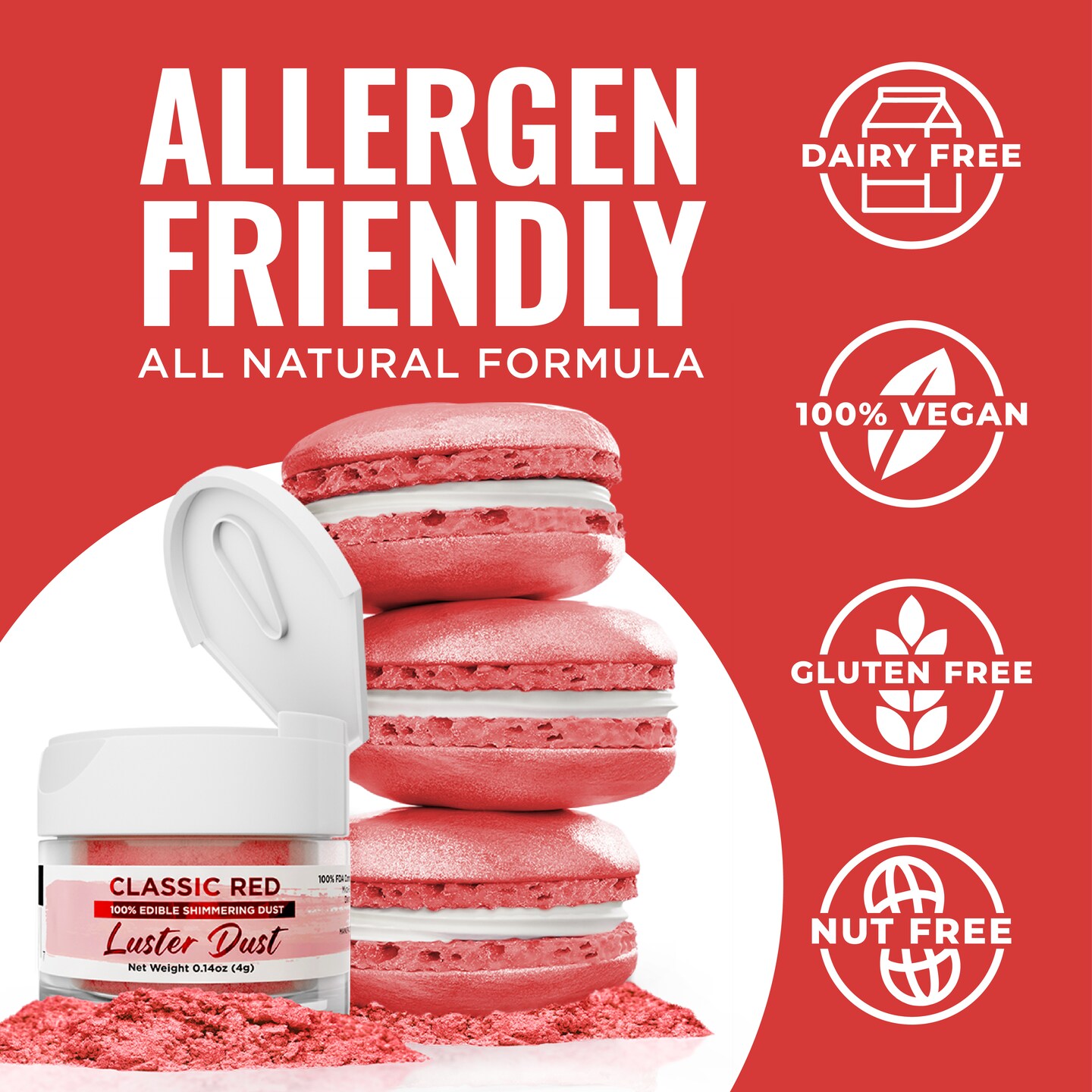 Bakell - Classic Red Luster Dust (4g, 1x Jar) Edible Vegan Dust & Paint for Baking, Desserts and Beverages