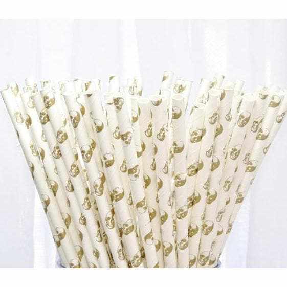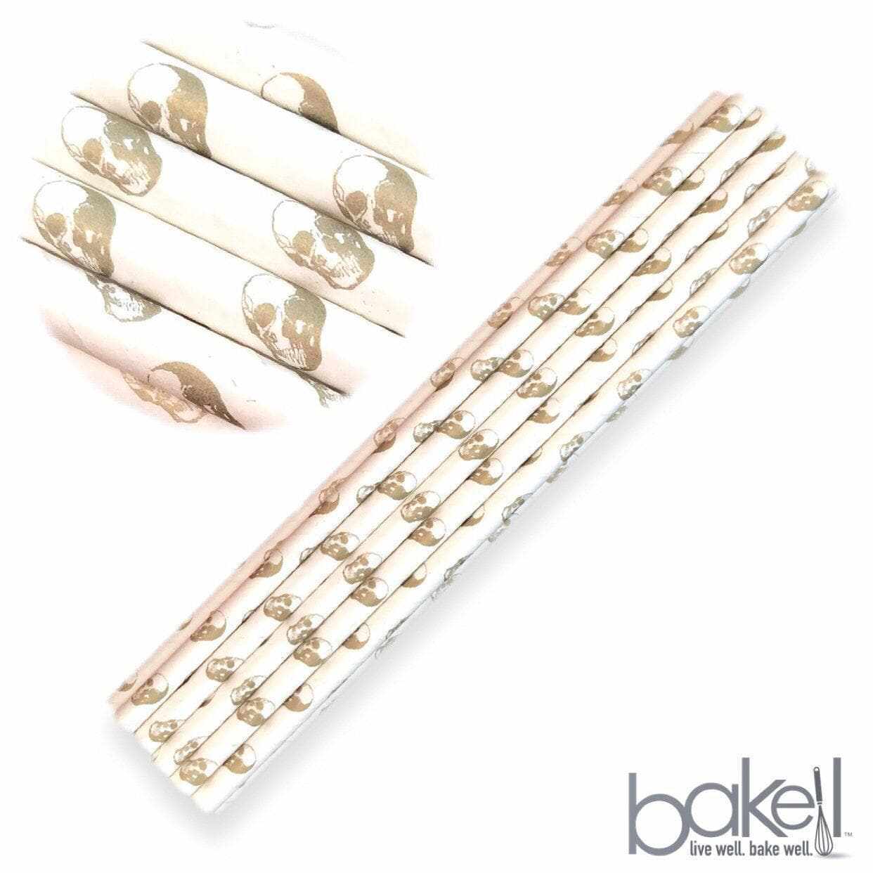 Bakell - Gold Skull Cake Pop Party Straws - 24pc