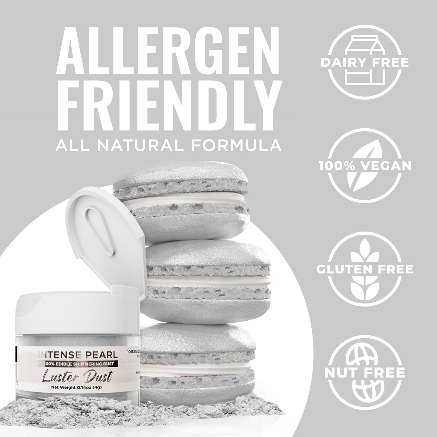 Bakell - Intense Pearl White Luster Dust (4g, 1x Jar) Edible Vegan Dust & Paint for Baking, Desserts and Beverages