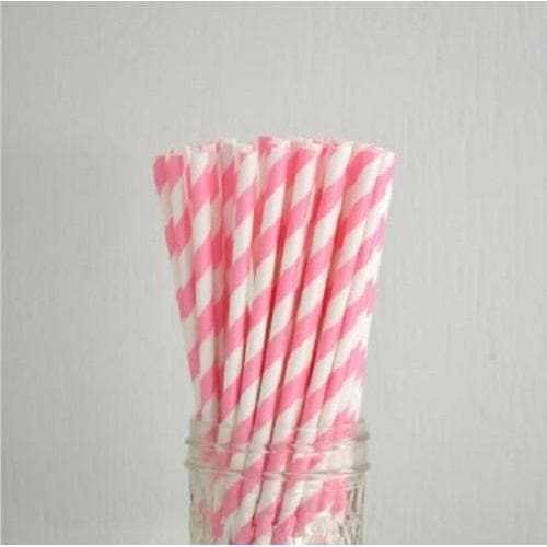 Bakell - Light Pink and White Striped Cake Pop Party Straws - 24pc