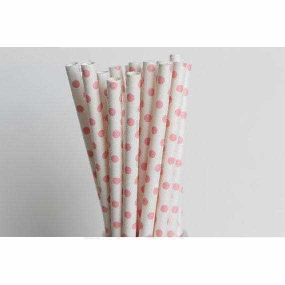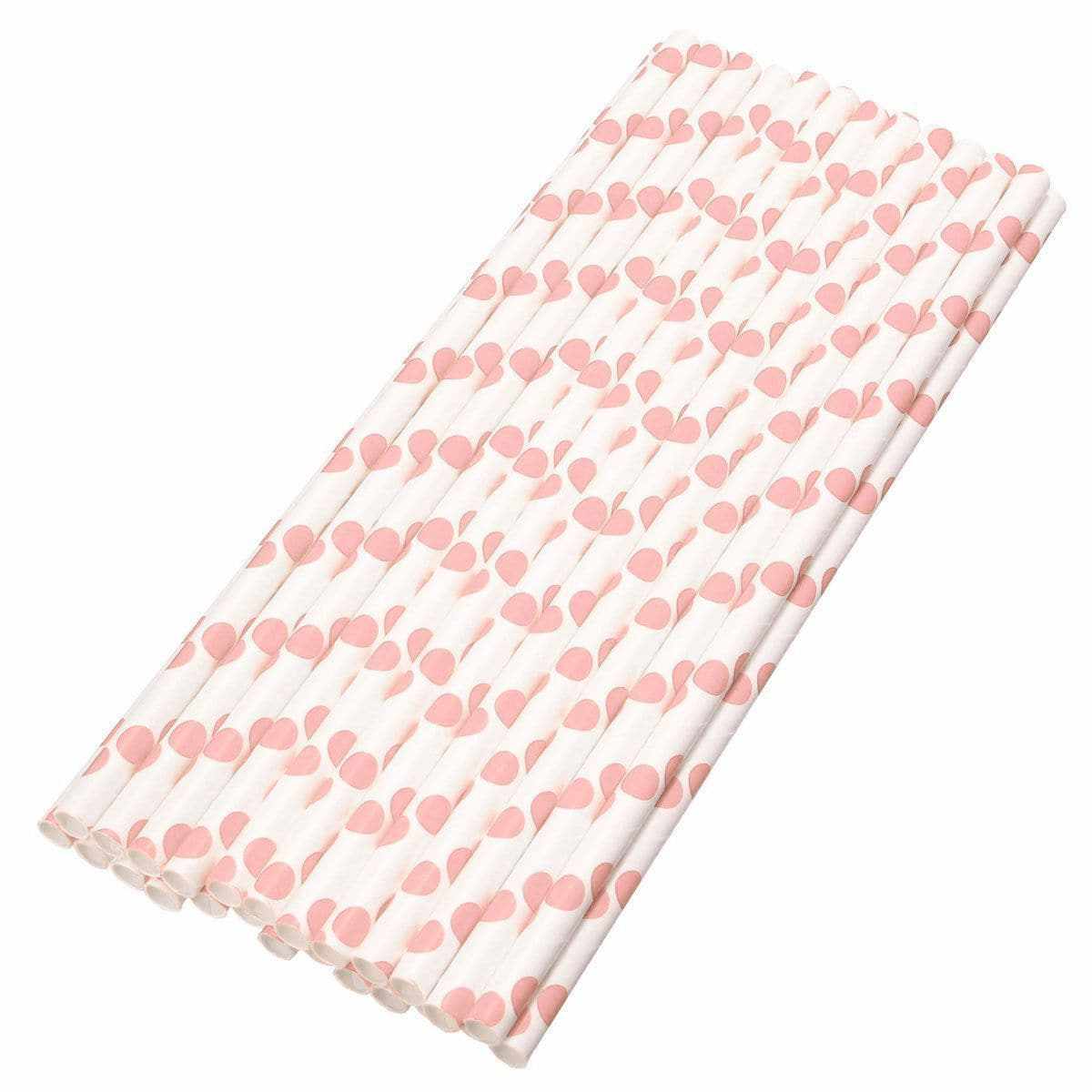 Bakell - Light Pink Polka Dot Cake Pop Party Straws - 24pc