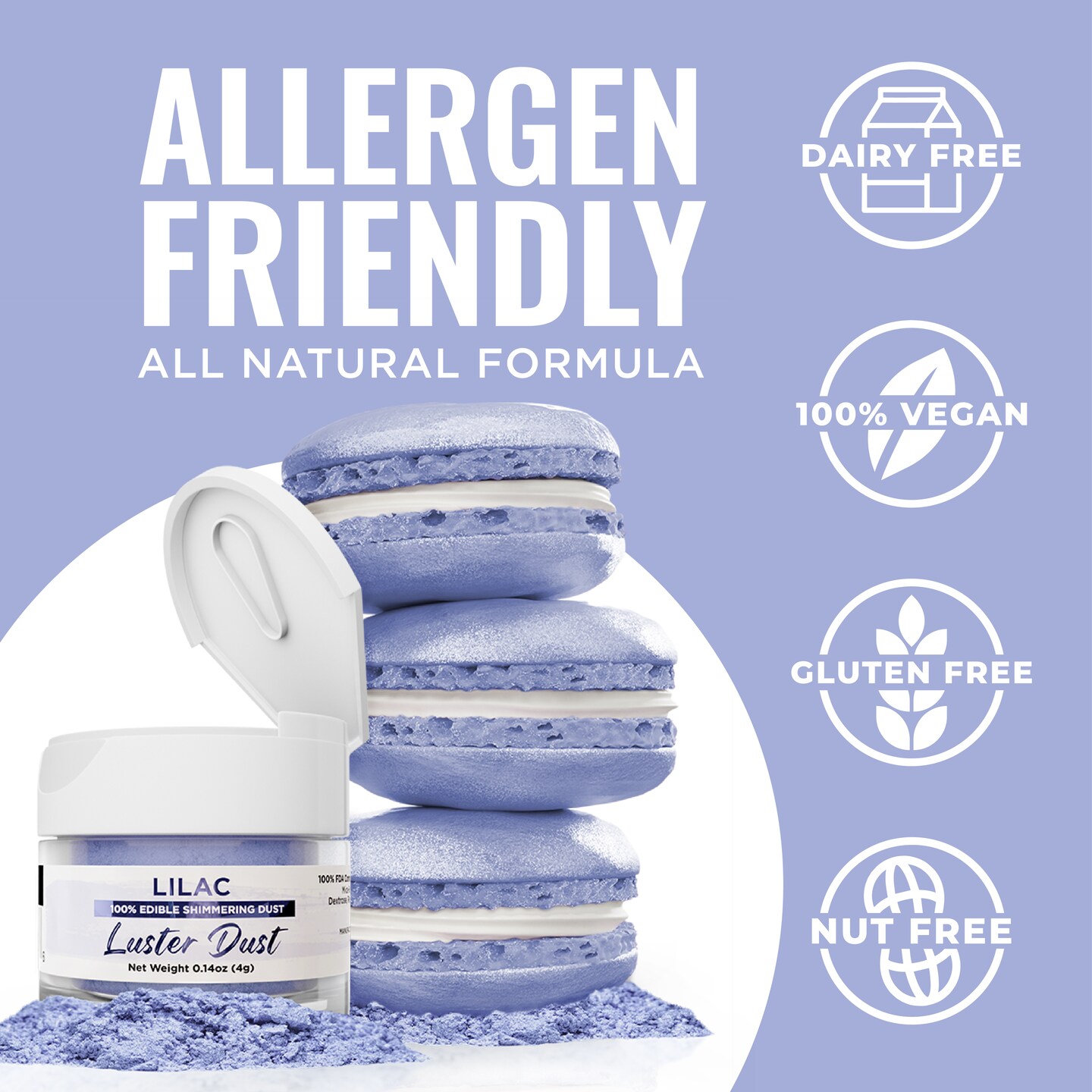 Bakell - Lilac PurpleLuster Dust (4g, 1x Jar) Edible Vegan Dust & Paint for Baking, Desserts and Beverages
