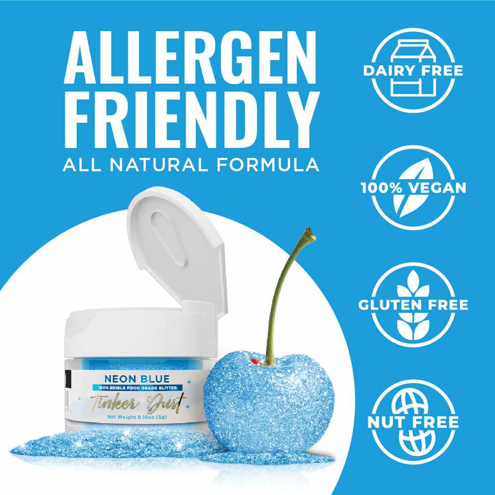Bakell - Neon Blue Tinker Dust Edible Glitter (5g, 1x Jar) for Food, Desserts, and Beverages!