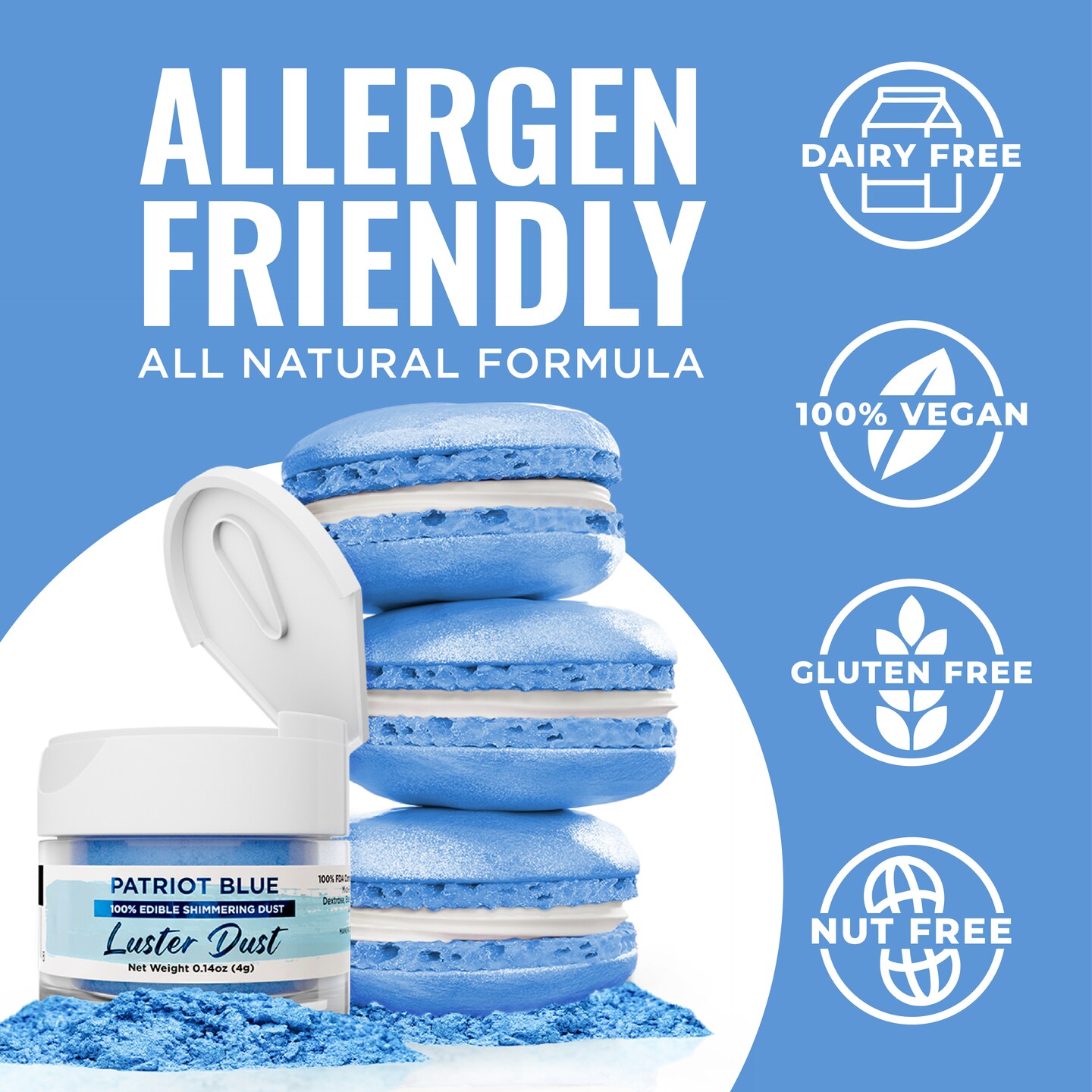 Bakell - Patriot Blue Luster Dust (4g, 1x Jar) Edible Vegan Dust & Paint for Baking, Desserts and Beverages