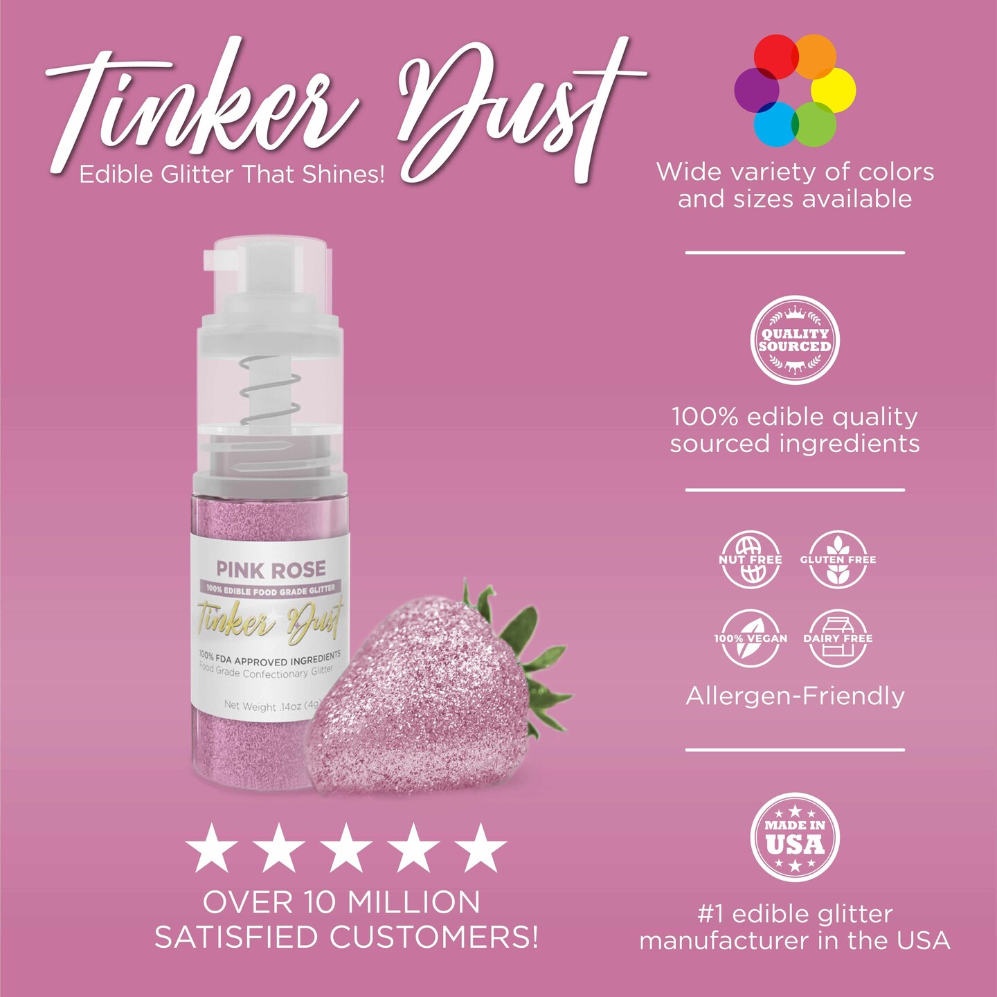 Bakell - Pink Rose Tinker Dust Edible Glitter (25g, 1x Spray Pump) for Food, Desserts, and Beverages!