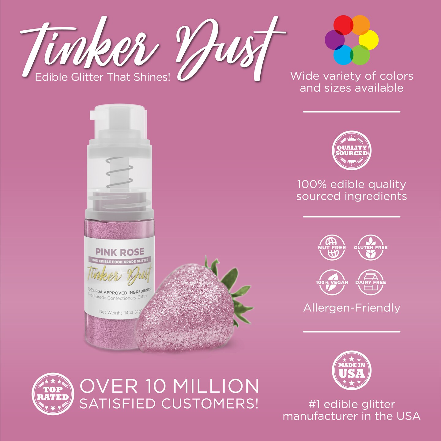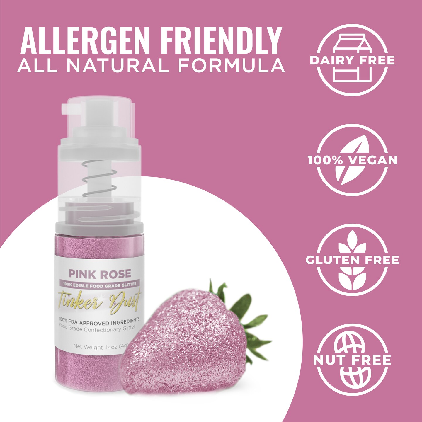 Bakell - Pink Rose Tinker Dust Edible Glitter (4g, 1x Spray Pump) for Food, Desserts, and Beverages!