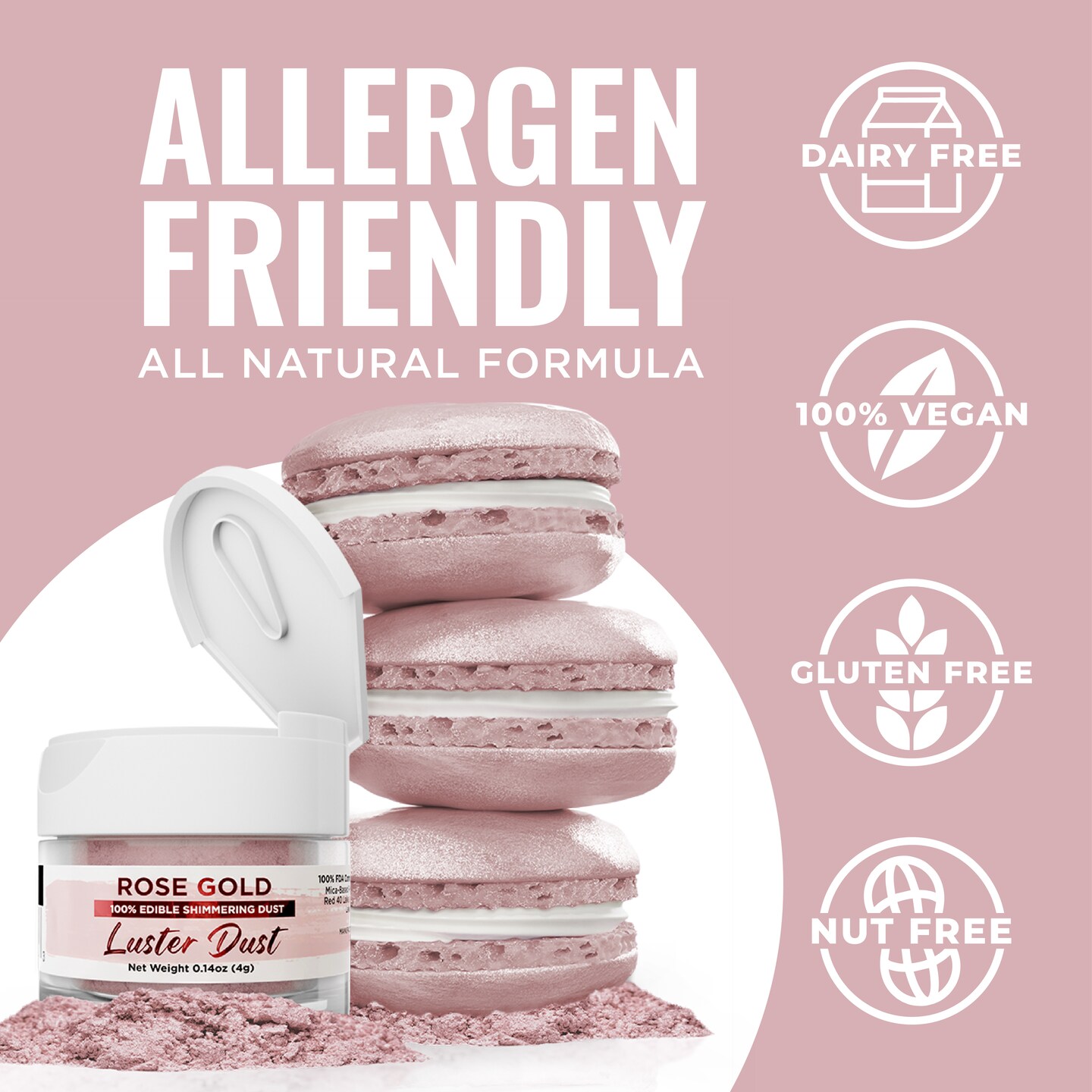 Bakell - Rose Gold Luster Dust (4g, 1x Jar) Edible Vegan Dust & Paint for Baking, Desserts and Beverages
