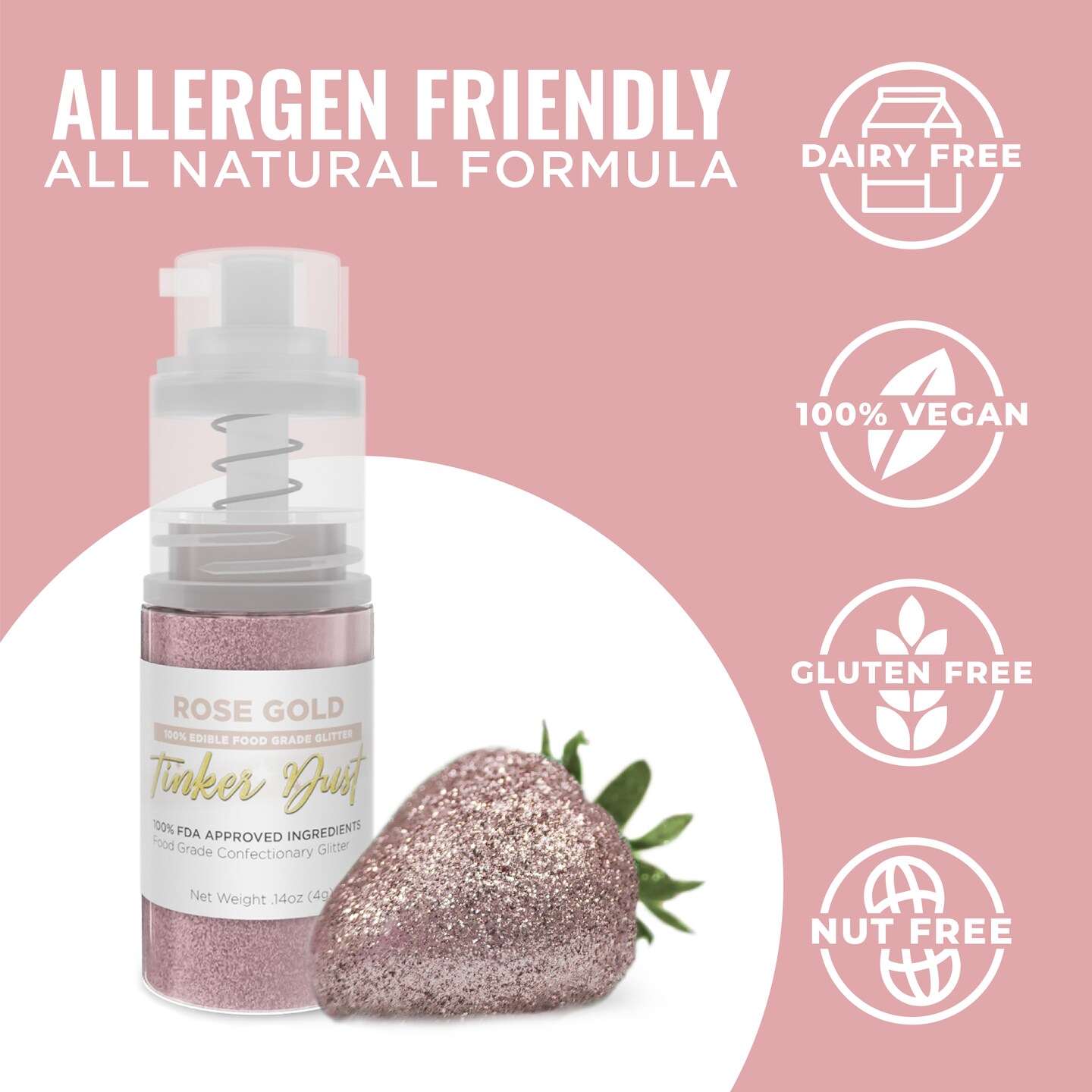 Bakell - Rose Gold Tinker Dust Edible Glitter (4g, 1x Spray Pump) for Food, Desserts, and Beverages!