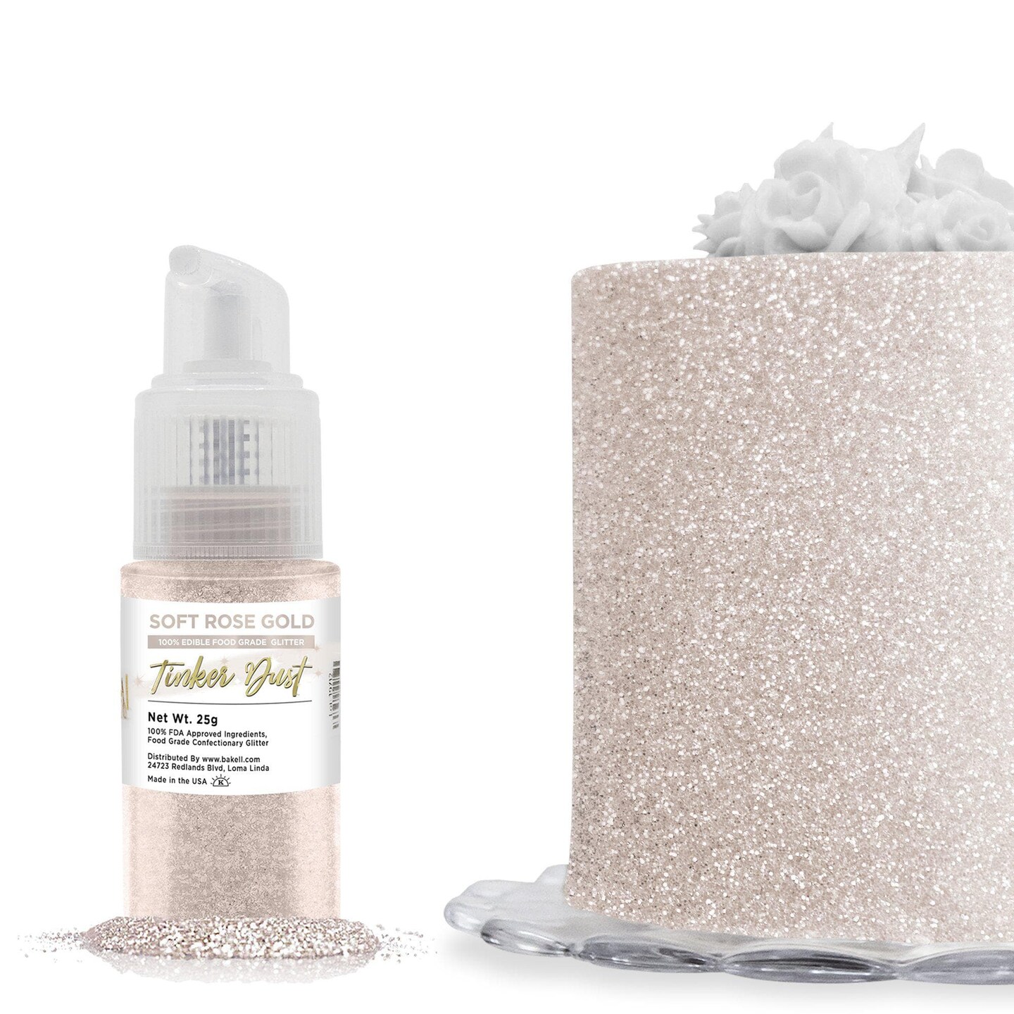 Bakell - Soft Rose Gold Tinker Dust Edible Glitter (25g, 1x Spray Pump) for Food, Desserts, and Beverages!