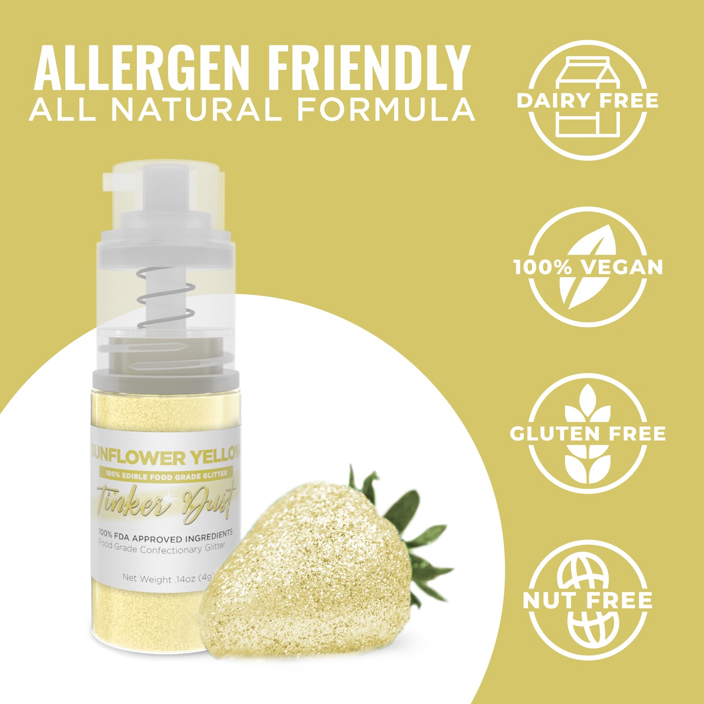 Bakell - Sunflower Yellow Tinker Dust Edible Glitter (4g, 1x Spray Pump) for Food, Desserts, and Beverages!