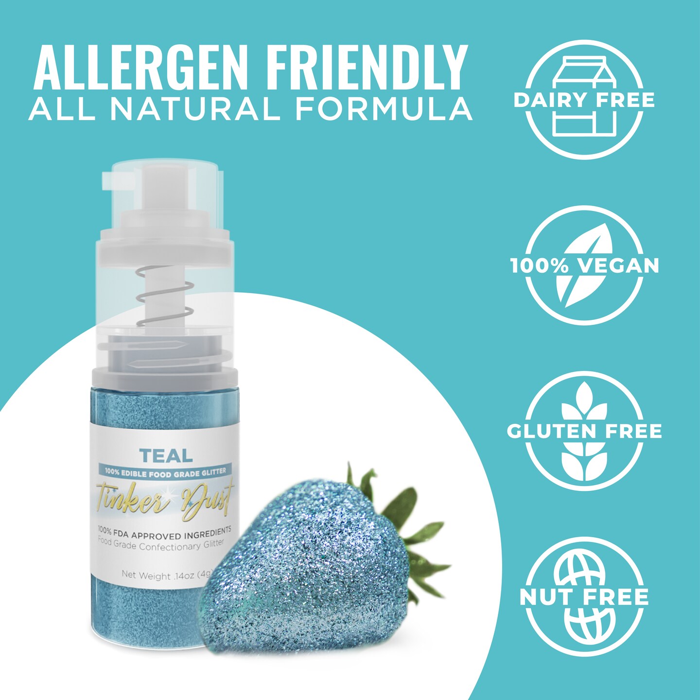Bakell - Teal Tinker Dust Edible Glitter (4g, 1x Spray Pump) for Food, Desserts, and Beverages!