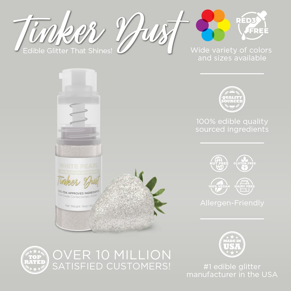 Bakell - White Pearl Tinker Dust Edible Glitter (4g, 1x Mini Spray Pump) for Food, Desserts, and Beverages!