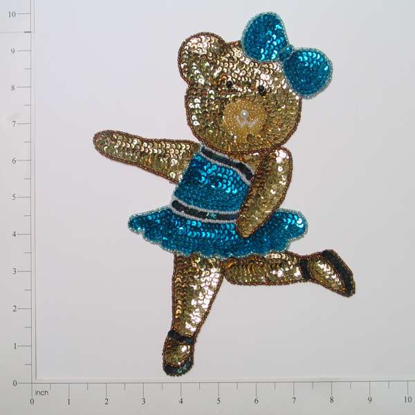 Ballerina Bear Sequin Applique/Patch - Blue, Brown - Large