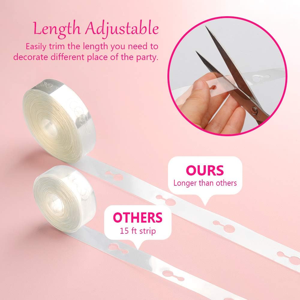 Balloon Arch Garland Decorating Strip Kit - 64 ft Ballon Tape Strips and 200 Dot Glue for Birthday Wedding Baby Shower Party DIY Decorations (Upgraded Version)