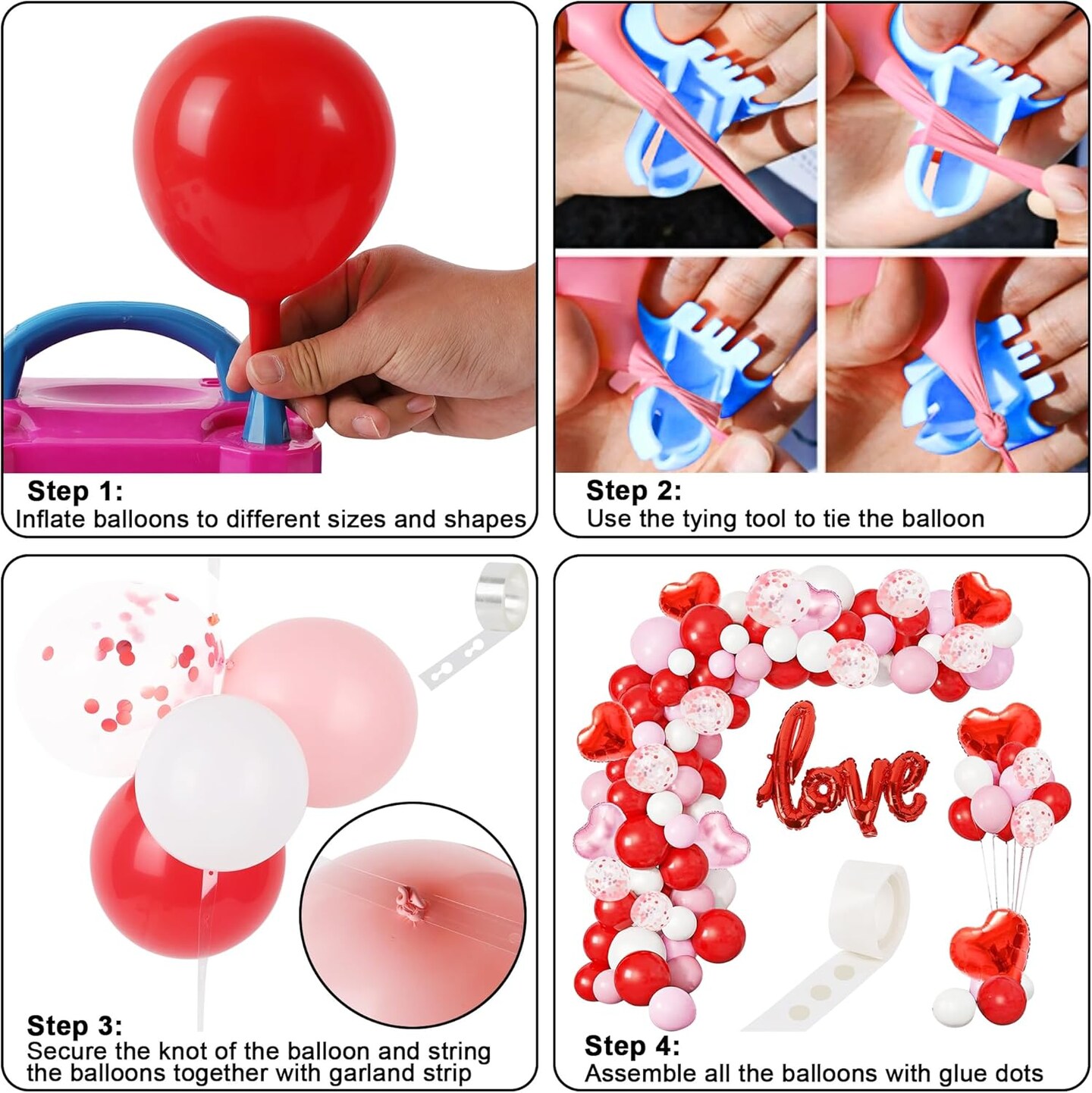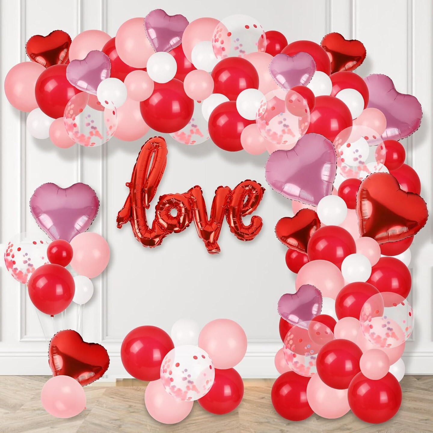 Balloon Arch Kit Decorations, Pink/White/Red Balloons Garland Decor with LOVE Heart Balloon Rose Petals