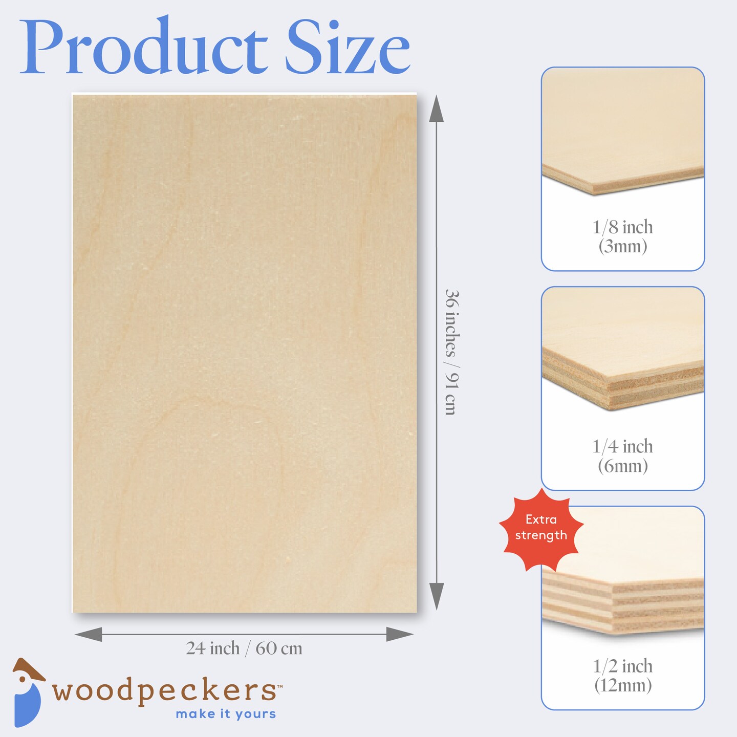 Baltic Birch Plywood, 24 x 36 Inch, B/BB Grade Sheets, 1/2, 1/4 or 1/8 Inch Thick| Woodpeckers