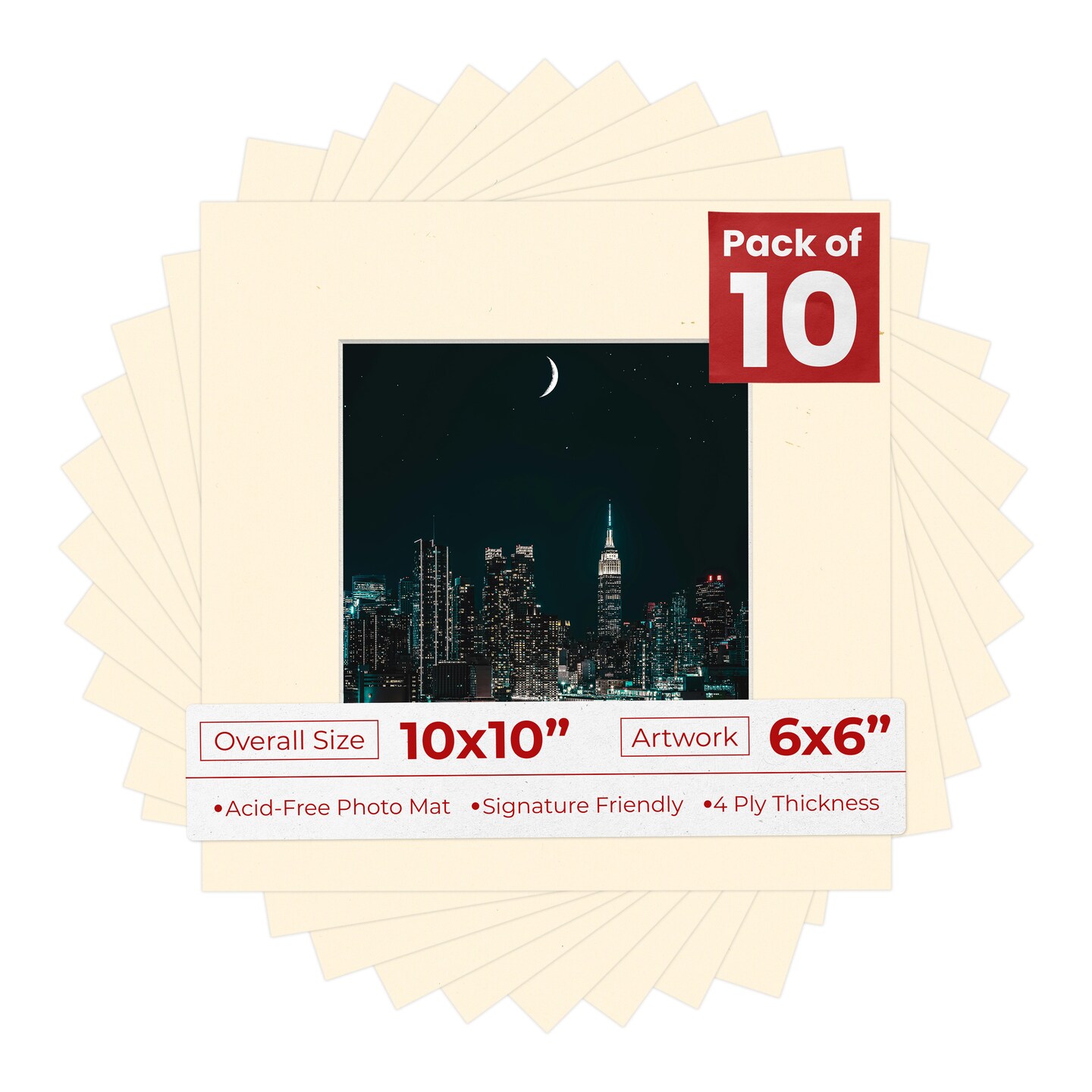 Bamboo Beige Mat Board for 10x10 Frames - Fits 6x6 Photos