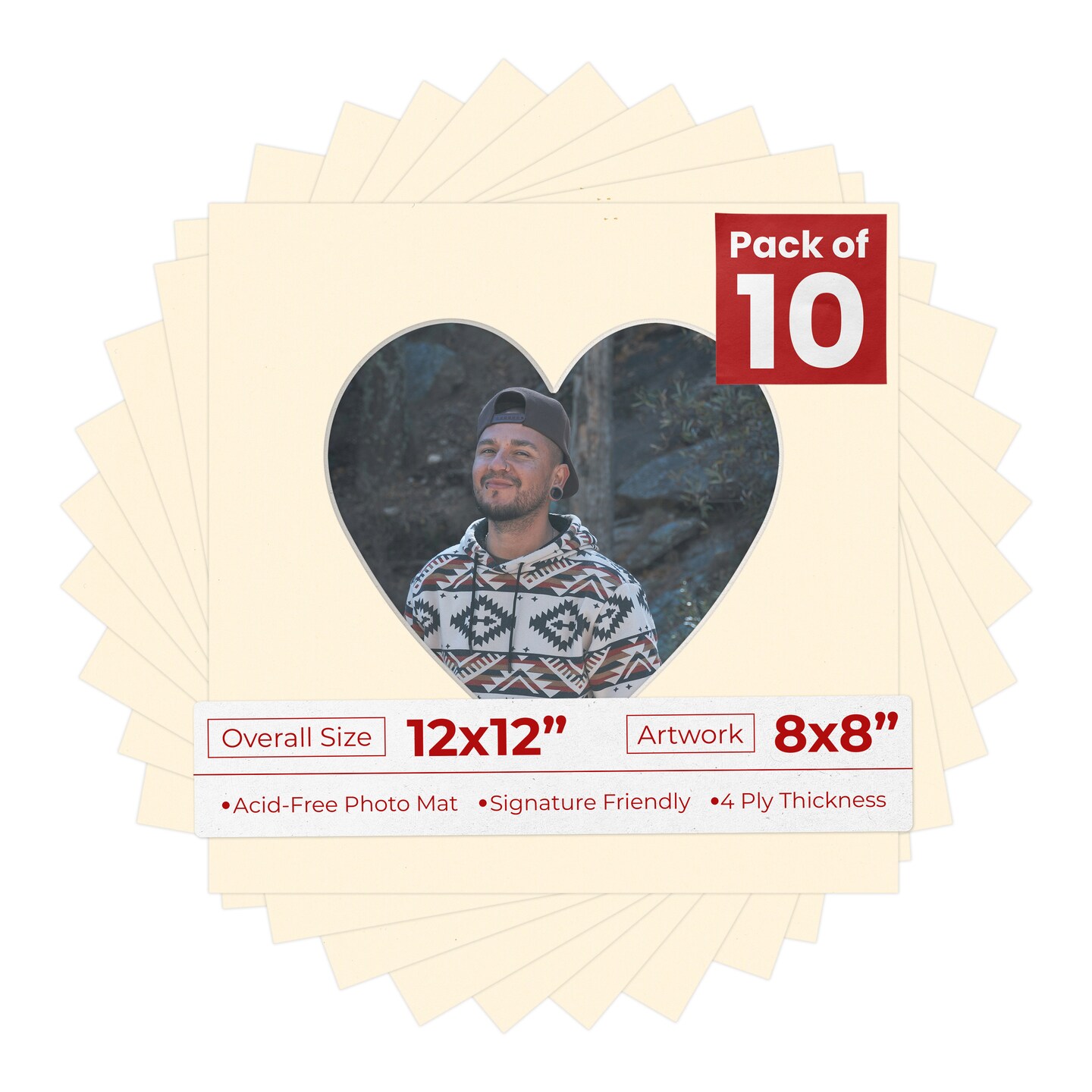 Bamboo Beige Mat Board for 12x12 Frames - Heart Opening for 8x8 Photos
