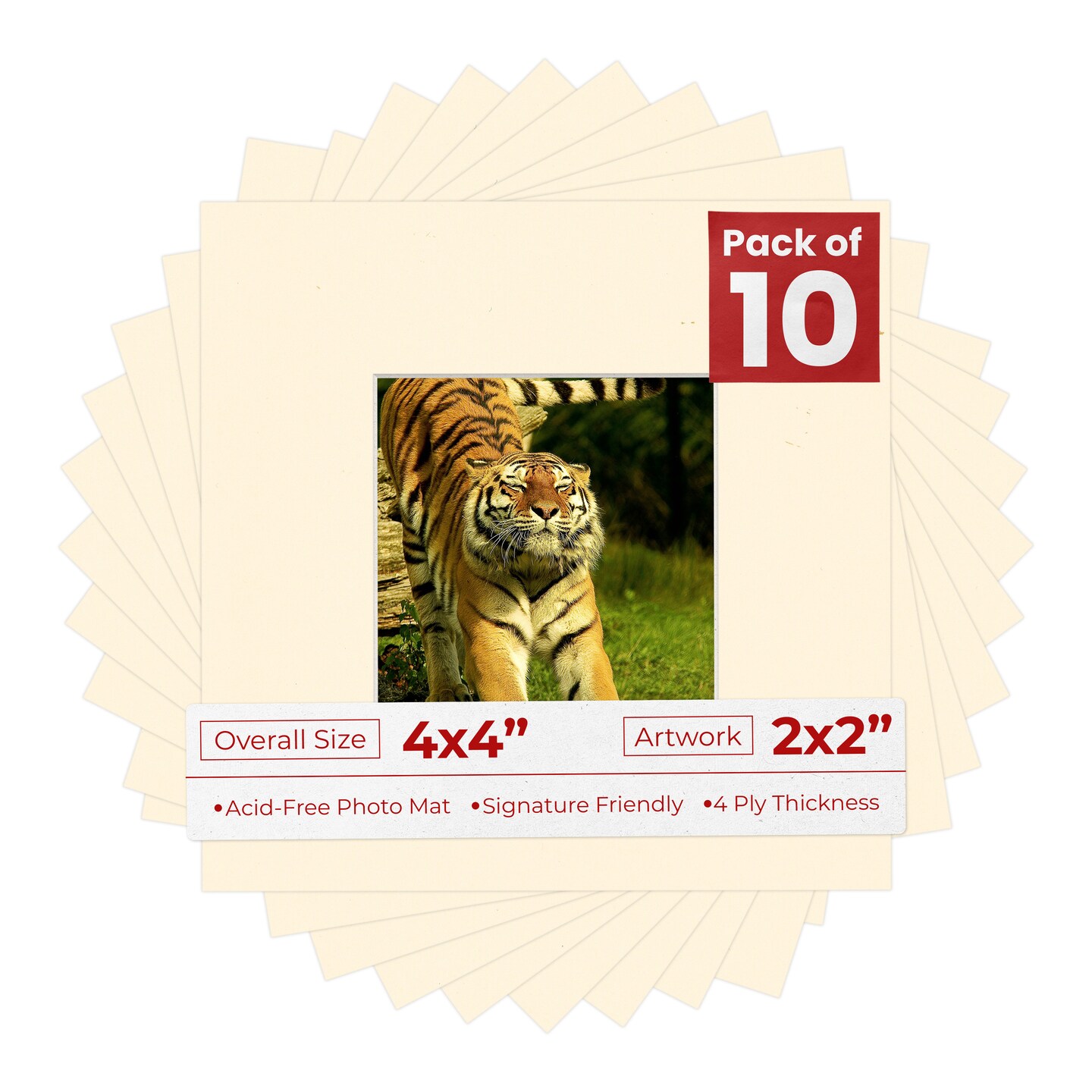 Bamboo Beige Mat Board for 4x4 Inch Frames - Fits 2x2 Photos