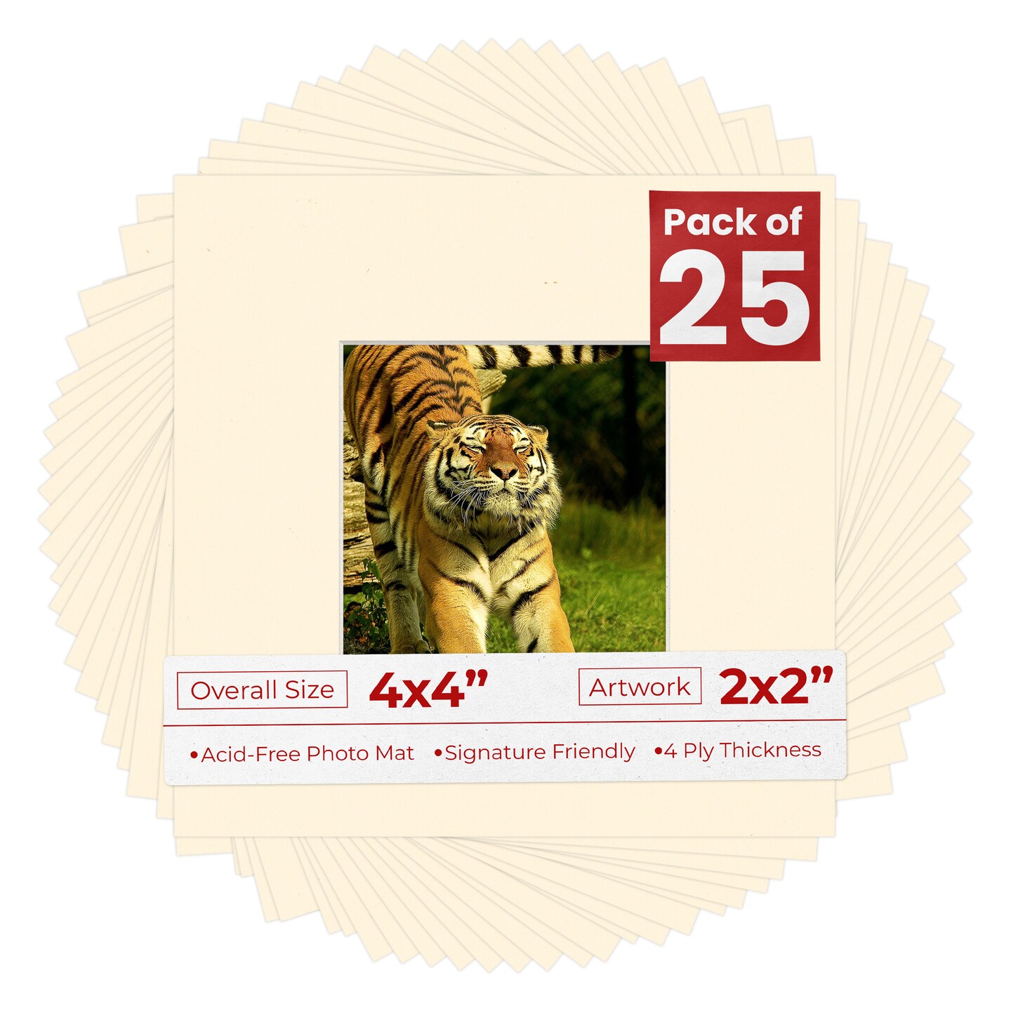 Bamboo Beige Mat Board for 4x4 Inch Frames - Fits 2x2 Photos