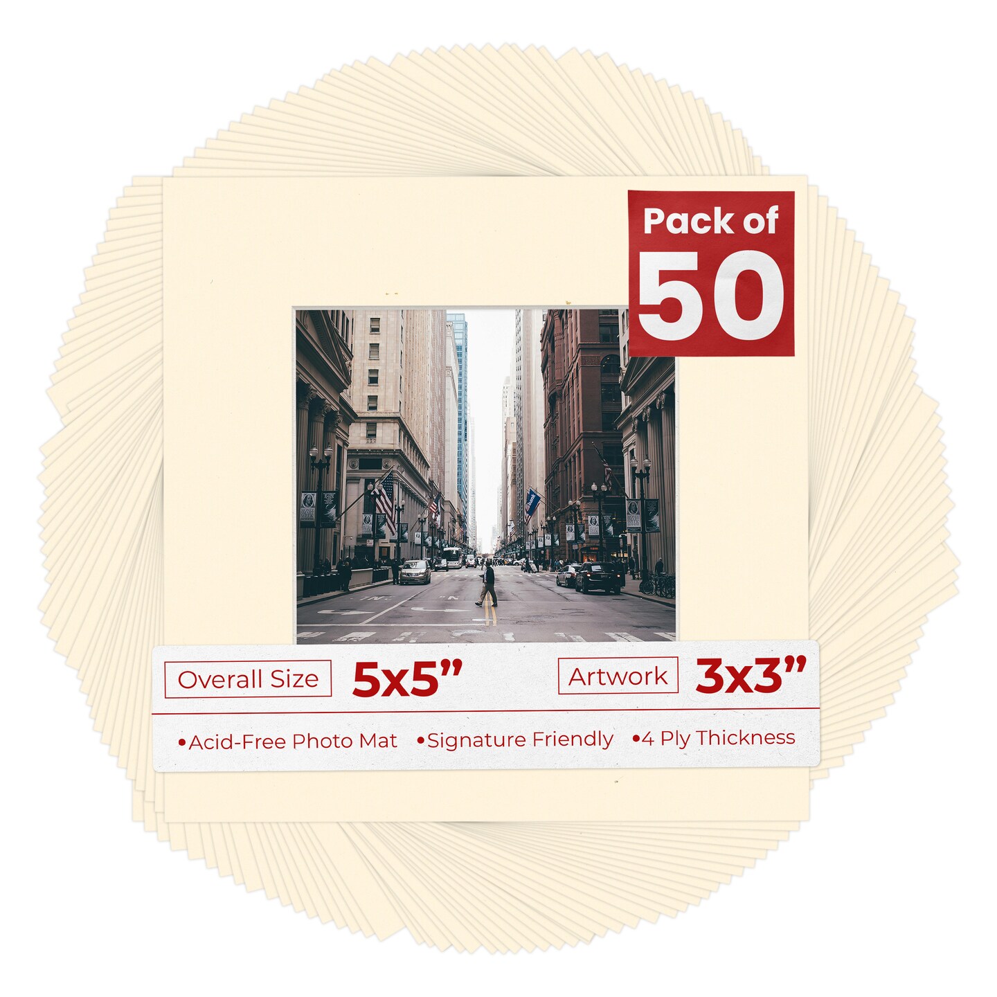 Bamboo Beige Mat Board for 5x5 Inch Frames - Fits 3x3 Photos
