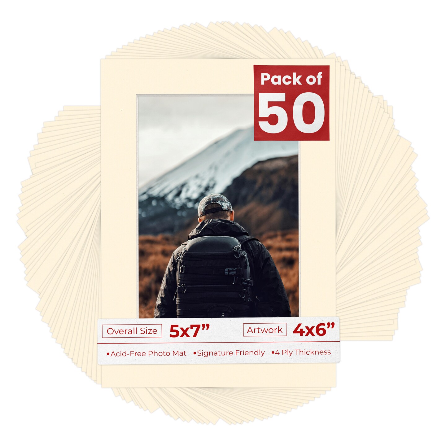 Bamboo Beige Mat Board for 5x7 Frames - Fits 4x6 Photos