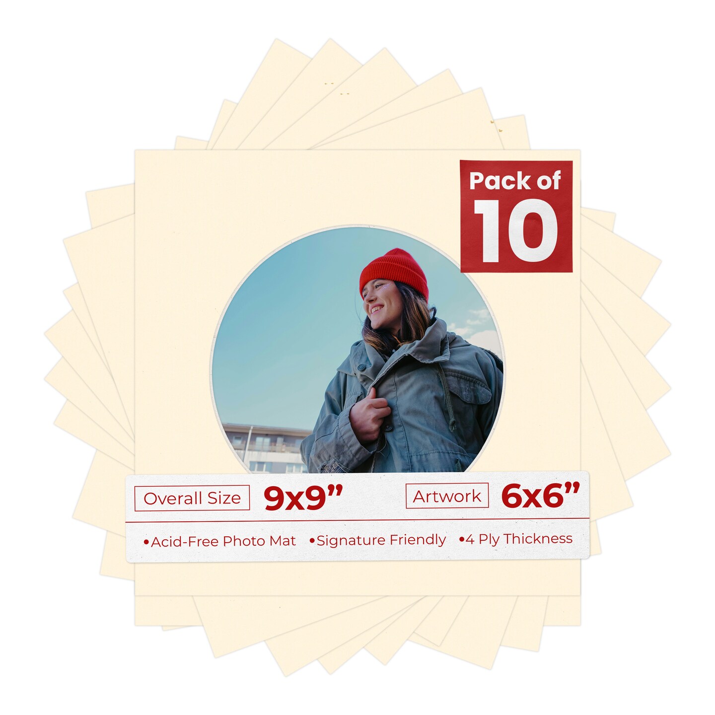 Bamboo Beige Mat Board for 9x9 Frames - Circle Opening for 6x6 Photos