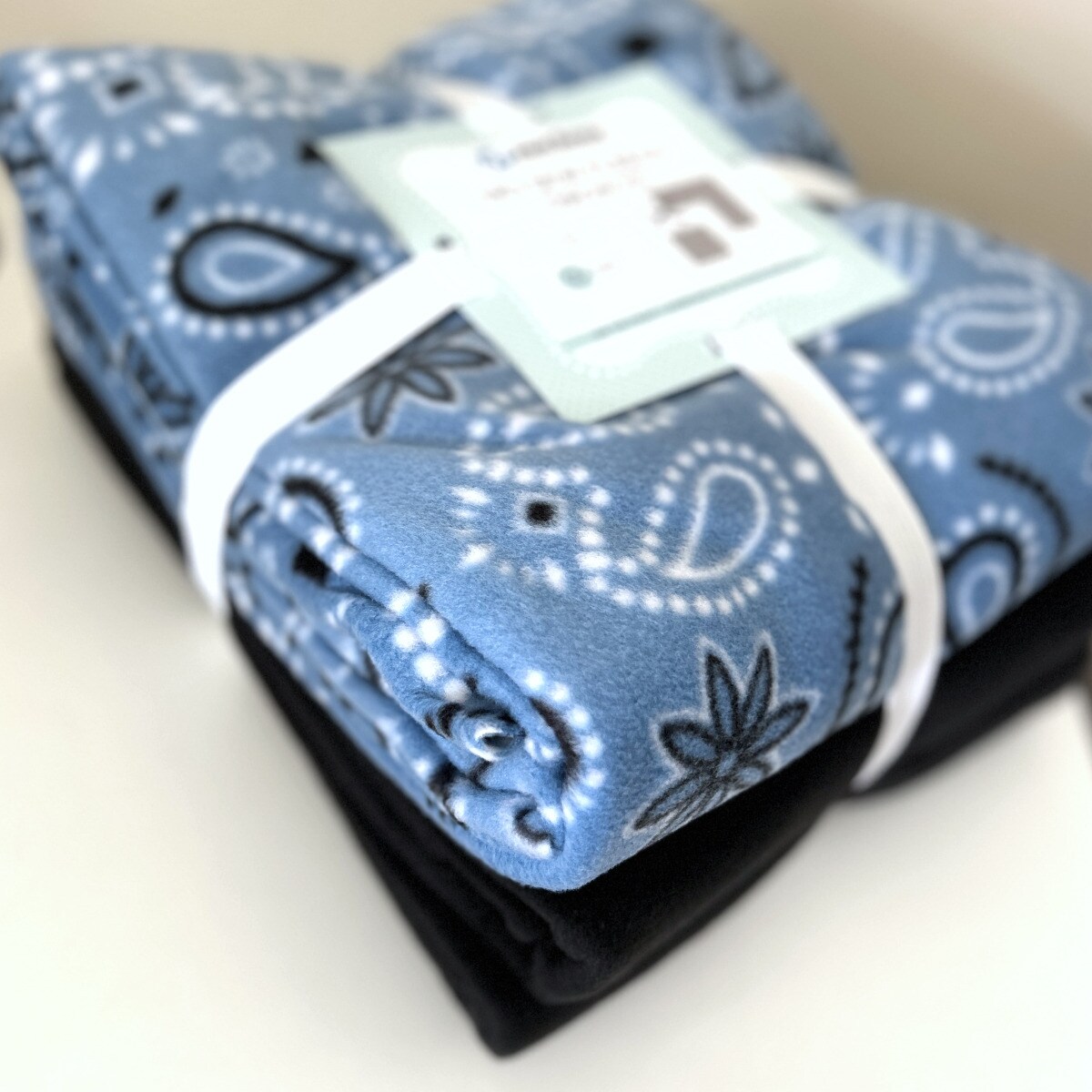 Bandana Handkerchief Blue Anti-Pill Premium No-Sew Throw Fleece Fabric Kit (50x60) with Navy Blue