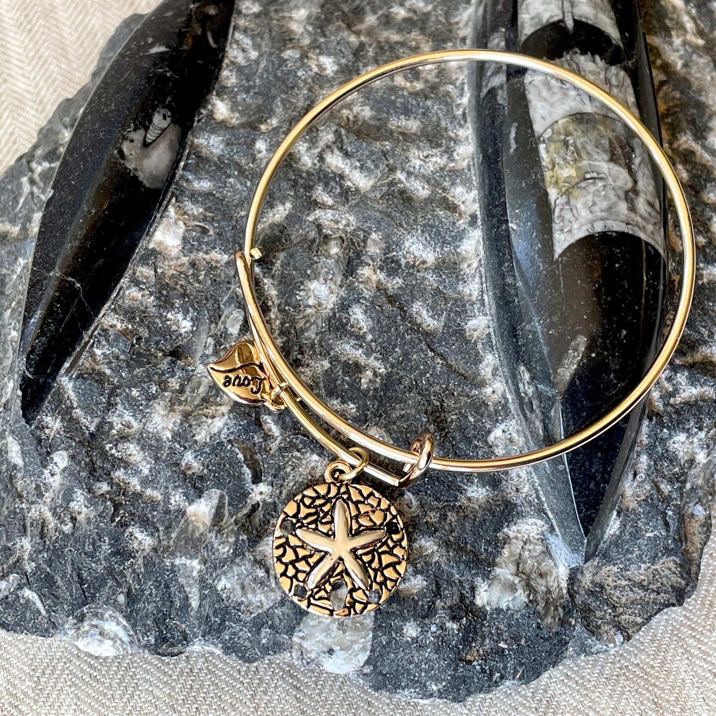 Bangle Bracelet with Sand Dollar Charm, Gold