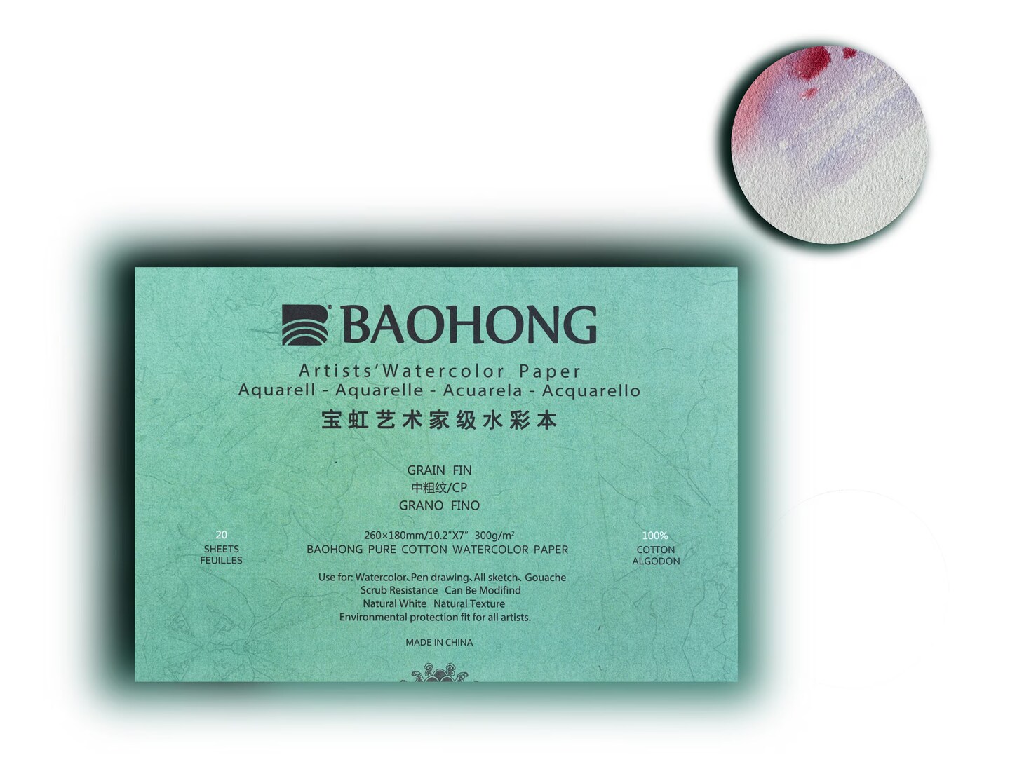 BAOHONG Artists‘ Watercolor Paper 100% Cotton, 140lb/300gsm, Watercolor Block, 20 sheets, Cold Press
