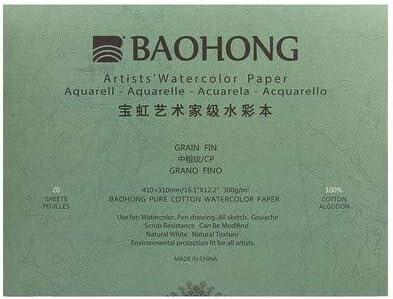 BAOHONG Artists‘ Watercolor Paper 100% Cotton, 140lb/300gsm, Watercolor Block, 20 sheets, Cold Press