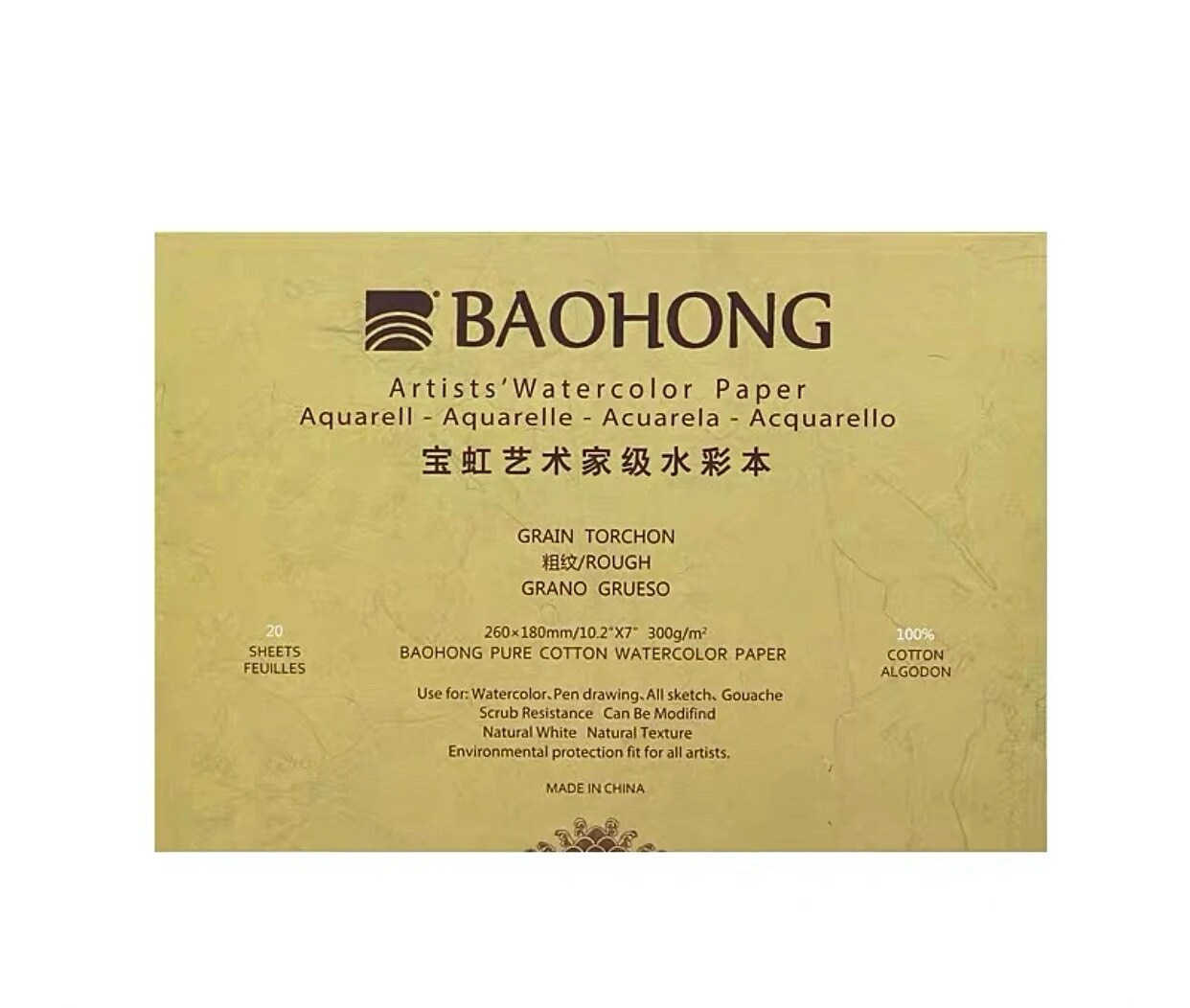BAOHONG Artists‘ Watercolor Paper 100% Cotton, 140lb/300gsm, Watercolor Block, 20 sheets, Rough Grain